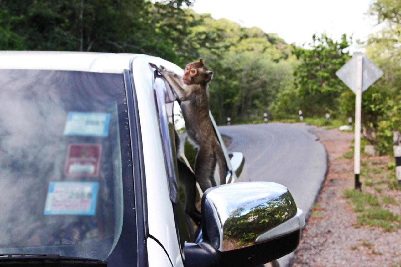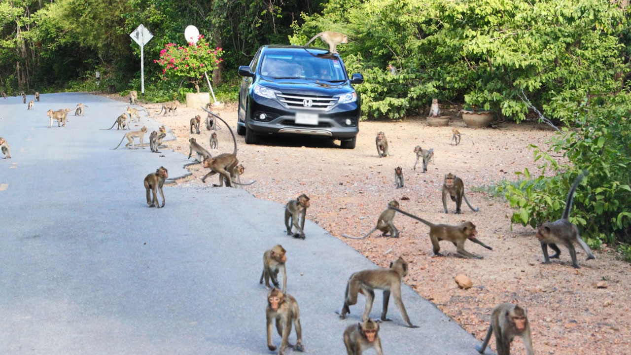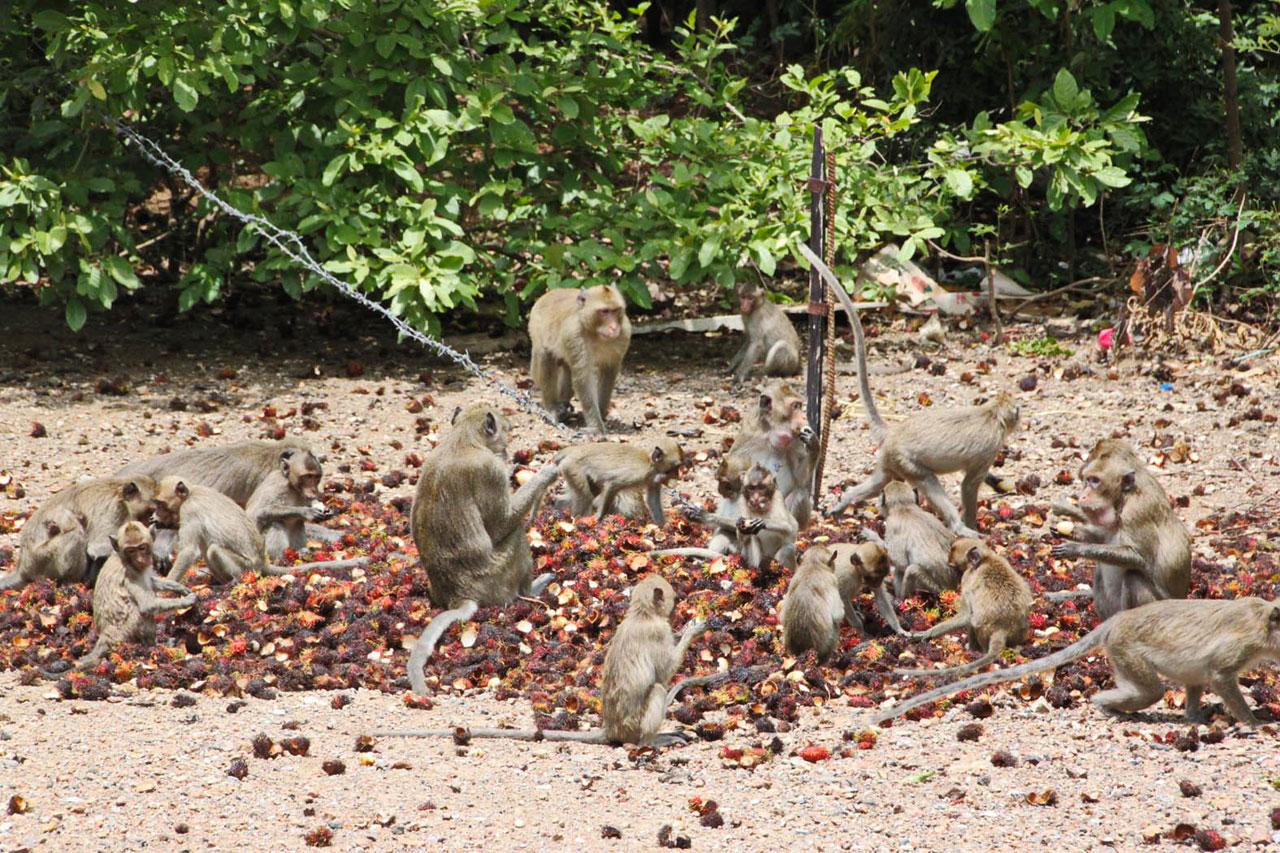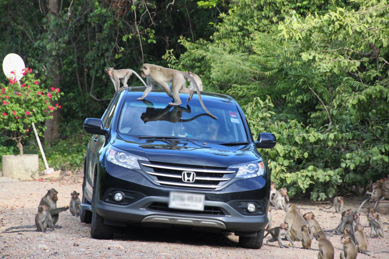 ขณะเดียวกัน ลิงบางกลุ่มจะแยกขึ้นไปลักขโมยของจากรถผู้ที่มาจอดกราบไหว้เสด็จเตี่ย บริวเณศาลบนเขาฯ และบางกลุ่มกระจายกันไปขโมยอาหารตามอาคารสถานที่ต่างๆ สร้างความเดือดร้อนให้ผู้พักอาศัยอยู่บริเวณนั้นอย่างมาก