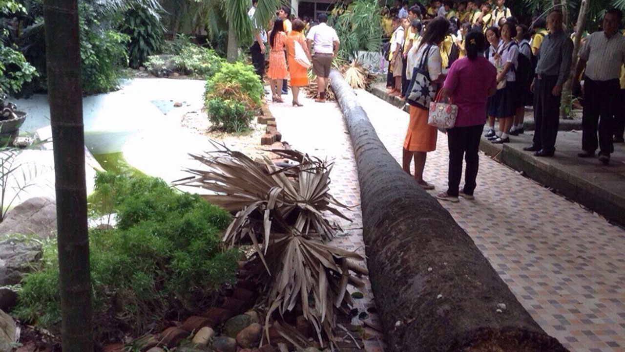 เมื่อเวลา 13.30 น. วันที่ 18 มิ.ย. 58 ร.ต.อ.วิชัย ขวัญอ่อน พงส.สภ.เมืองพัทลุง ได้รับแจ้งจากครูโรงเรียนพัทลุง ในเขตเทศบาลเมืองพัทลุงว่า มีเหตุลมพัดแรง ทำให้ต้นตาลอายุกว่า 50 ปี สูงประมาณ 20 เมตร ซึ่งปลูกอยู่ในบริเวณสวนป่าภายในโรงเรียน ได้หักโค่น ล้มทับนักเรียนหญิง 1 ราย โดย นายจำเนียร รักใหม่ ผู้อำนวยการโรงเรียนพัทลุง และคณะครู ได้นำร่างผู้บาดเจ็บส่ง รพ.พัทลุง เพื่อเร่งช่วยเหลือชีวิตแล้ว แต่ทนพิษบาดแผลไม่ไหวได้เสียชีวิตในเวลาต่อมา จึงแจ้งให้ผู้บังคับบัญชาทราบ และรุดไปที่เกิดเหตุ พร้อมด้วย พ.ต.อ.ภวัต ประชาญสิทธิ์ ผกก.สภ.เมืองพัทลุง นายตำรวจที่เกี่ยวข้อง และร่วมชันสูตรพลิกศพ กับแพทย์เวร รพ.พัทลุง