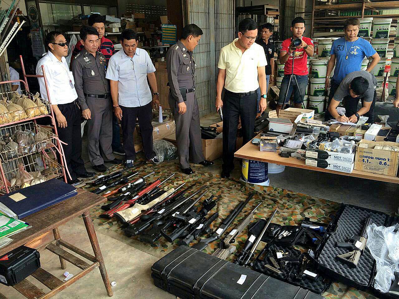 ความคืบหน้าล่าสุด เมื่อวันที่ 19 มิ.ย.58 พ.ต.อ.สุรพงษ์ ถนอมจิตร รอง ผบก.ภ.นนทบุรี พร้อมด้วยพ.ต.ท.พิเชียรยศ อรุณพันธกุล รรท.ผกก.สส.ภ.นนทบุรี เข้าประสานงานกับ พ.ต.อ.ชัยรัตน์ ทิพยจันทร์ รรท. ผบก.ภ. สุพรรณบุรี ก่อนนำกำลังประกอบด้วย พ.ต.อ. สุระพรรณ นาทวรทัต ผกก.กก.สส.ภ.สุพรรณบุรี พ.ต.อ.เสกสรรค์ นิ่มนวล ผกก.สภ.เดิมบางนางบวช พ.ต.ท.สาโรจน์ พิมพ์คุณากรณ์ รอง ผกก.กก.สส. เจ้าหน้าที่พิสูจน์หลักฐาน กำลังชุดสืบสวน กก.สส.ภ.นนทบุรี และกก.สส.ภ.สุพรรณบุรี พร้อมหมายศาล จ.นนทบุรี เข้าตรวจค้นร้านวัสดุก่อสร้างชื่อ “กิจไพศาล” เลขที่ 10/5 หมู่ 2 ต.เขาพระ อ.เดิมบางนางบวช และที่บ้านพักเลขที่ 88 หมู่ 4 ต.เขาพระ อ.เดิมบางนางบวช จับกุมนายนิสิต เพียรสัมฤทธิ์ อายุ 41 ปี ได้พร้อมอาวุธปืนไรเฟิล ปืนลูกกรด ปืนพกสั้นลูกโม่ และปืนลูกซองยาว รวม 29 กระบอก ในจำนวนนี้ไม่มีทะเบียน 4 กระบอก กระสุนขนาดต่างๆ จำนวน 8,686 นัด