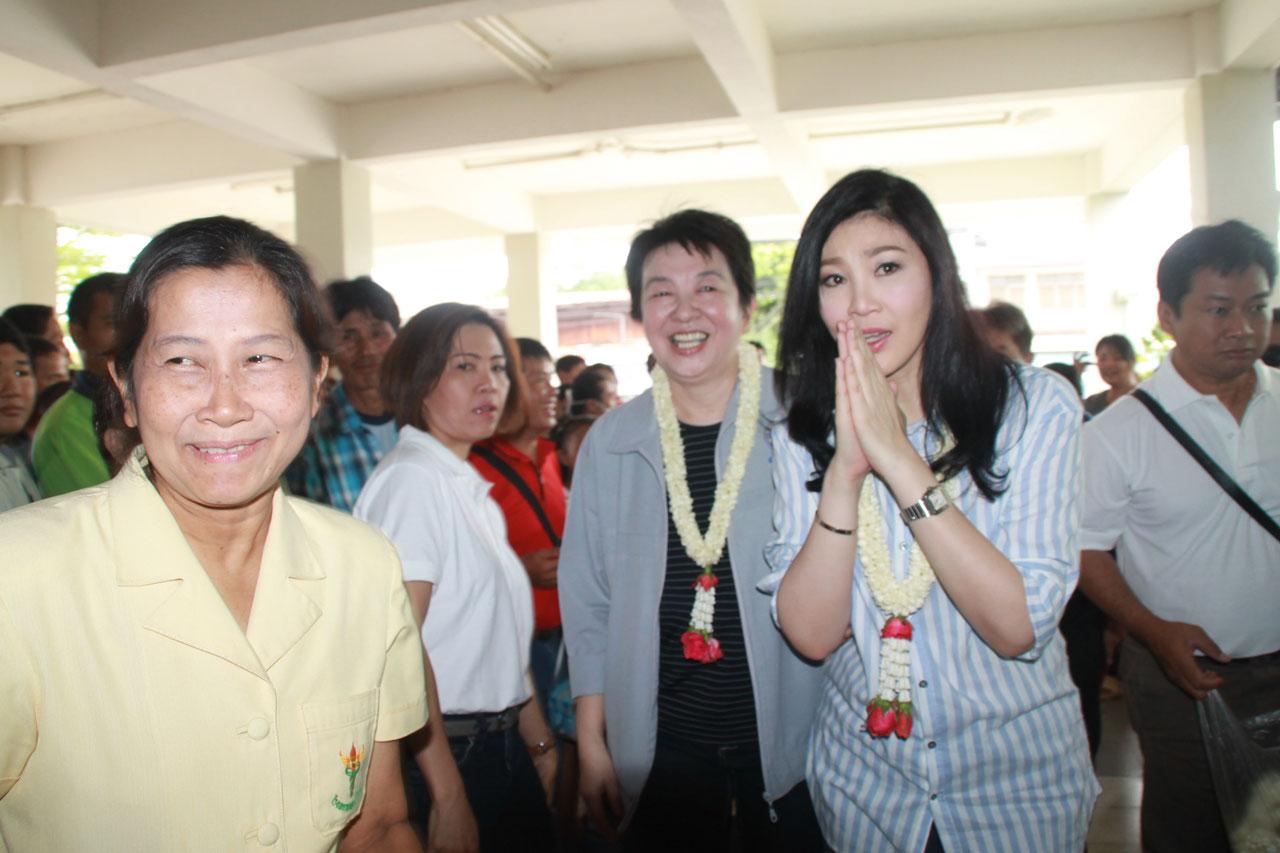 น.ส.ยิ่งลักษณ์ ชินวัตร เดินสาย เยี่ยมและให้กำลังใจบิดาของ น.ส.กฤษณา สีหลักษณ์ อดีตรัฐมนตรีประจำสำนักนายกรัฐมนตรี มีมวลชนมามอบดอกไม้ให้กำลังใจ ที่ โรงพยาบาลอุตรดิตถ์