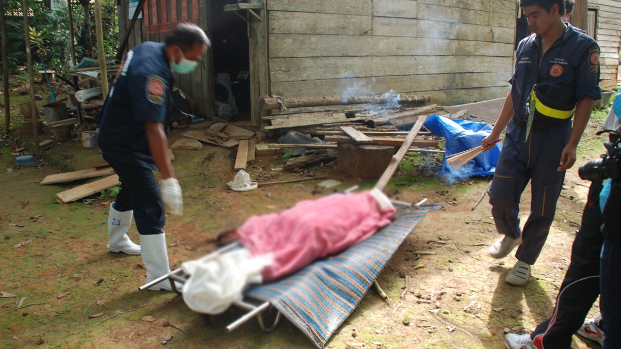 ผู้สื่อข่าวรายงานว่า เมื่อวันที่ 23 มิ.ย.ที่ผ่านมา ร.ต.ท.รัฐกาญจน์ พรมราช ได้รับแจ้งจาก นายสัมฤทธิ์ ยี่สิ้น อายุ 58 ปี กำนัน ต.นาตาล่วง ว่ามีคนเสียชีวิตอยู่ในบ้านแห่งหนึ่ง ที่ อ.เมือง จ.ตรัง จึงรายงานให้ผู้บังคับบัญชาทราบแล้วไปตรวจสอบที่เกิดเหตุ พร้อมด้วย พ.ต.อ.วดล คงพิพัฒน์กูล พงส.ผทค.สภ.เมืองตรัง และ พ.ต.ท.โชค ศรีนวลจันทร์ สวป.สภ.เมืองตรัง พร้อมชุดสืบสวน พร้อมทั้งประสานไปยัง พ.ต.ท.สราวุธ จงจิต รอง ผกก.หน.พิสูจน์หลักฐาน จ.ตรัง แพทย์เวรโรงพยาบาลตรัง เจ้าหน้าที่มูลนิธิกุศลสถานตรัง