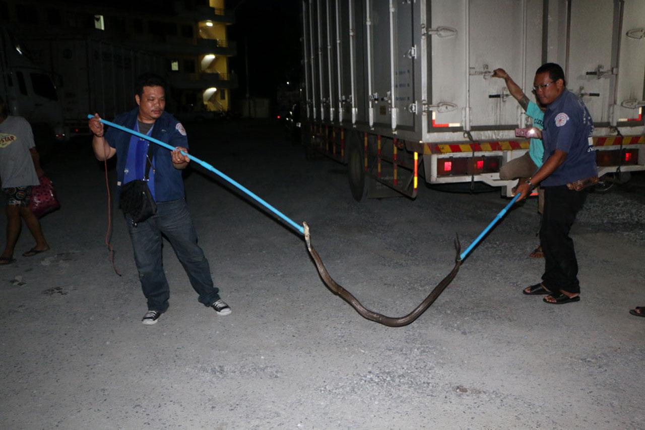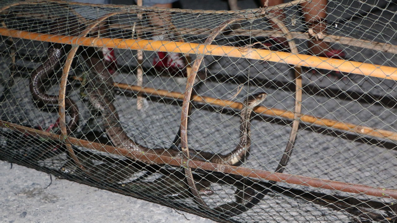 เมื่อคืนวันที่ 25 มิ.ย. 58 หน่วยกู้ภัยฉะเชิงเทรา ตรวจสอบที่บ้านเลขที่ 66 หมู่ 2 ต.บางวัว อ.บางปะกง จ.ฉะเชิงเทรา หลังนายบุญลือ อู่เจริญ อายุ 53 ปี โทรแจ้งว่ามีงูเห่าขนาดใหญ่ อยู่ภายในลอบดักปลา โดยกู้ภัยและชาวบ้านได้ช่วยกันนำลอบดักปลาขึ้นมา พบว่างูเห่าที่อยู่ในลอบมีความยาวเกือบ 1.70 เมตร และไล่ฉกปลาที่อยู่ในลอบตายเกือบหมด เพื่อจับกินเป็นอาหาร กู้ภัยใช้บ่วงเชือกจับอยู่ประมาณ 10 นาที เนื่องจากลำตัวงูไปรัดกับตาข่ายลอบจนต้องใช้มีดตัดออกบางส่วน และนำออกมาใส่ถุงปุ๋ยปล่อยคืนสู่ธรรมชาติ