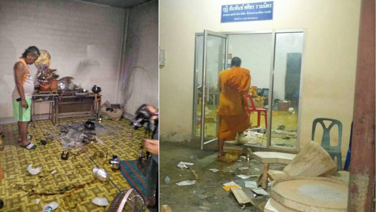 พบผู้ก่อเหตุเป็นสามเณรอายุ 16 ปี อยู่ในอาการตาขวางคล้ายคนเมา จุดไฟเผากุฏิที่จำวัดจนได้รับความเสียหาย และยังอาละวาดทำลายข้าวของจนล้มระเนระนาด