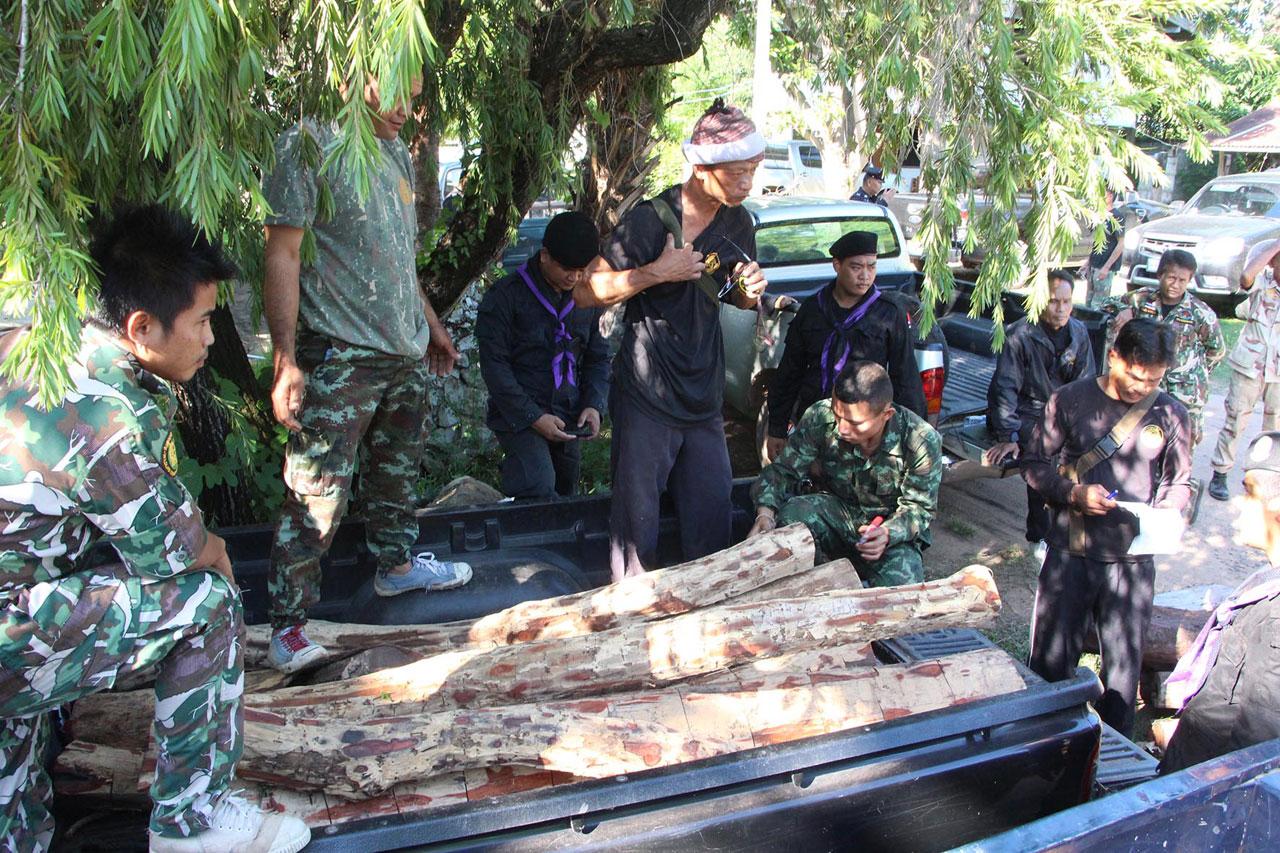 เจ้าหน้าที่ตรวจสอบบริเวณรอบๆ พบไม้พะยูงขนาดต่างๆ วางเรียงรายกระจัดกระจายอีกจำนวน 37 ท่อน รวมไม้ทั้งหมด 73 ท่อน ปริมาตร 2.985 ลบ.ม. ซึ่งไม้จำนวนนี้เมื่อส่งออกไปต่างประเทศได้จะมีมูลค่าเกือบ 9 ล้านบาท นอกจากนั้น ยังพบรถจักรยานยนต์ ยี่ห้อฮอนด้า ไม่ติดแผ่นป้ายทะเบียน จอดอยู่บริเวณกองไม้พะยูงอีกสองคัน