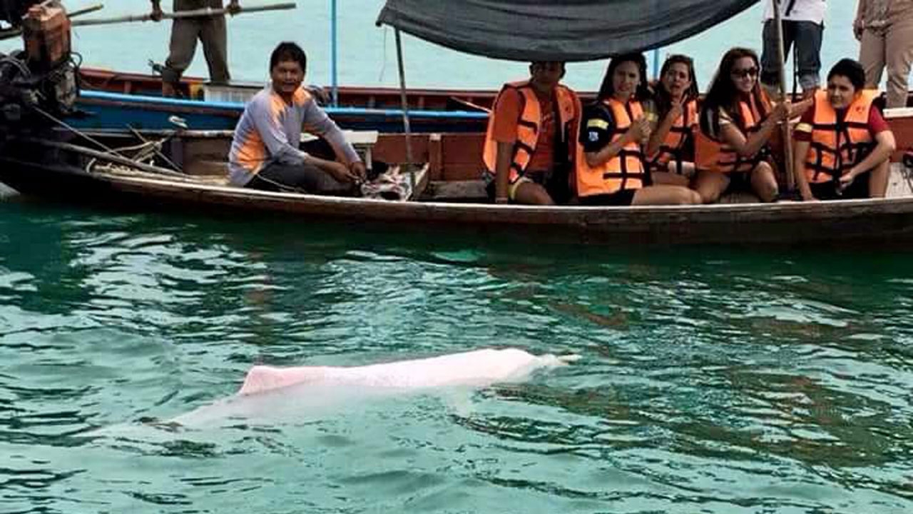 ทางด้านนางชวนชื่น อรรถพร จนท.ฝ่ายพัฒนาบุคลากร ชมรมธุรกิจท่องเที่ยว อ.ขนอม เปิดเผยว่า จากข้อมูลสถิติ ทุกๆปีจะมีนักท่องเที่ยวทั้งชาวไทยและต่างประเทศหลั่งไหลเข้ามาเที่ยวและพักที่ อ.ขนอม เป็นจำนวนมาก โดยเฉพาะปีนี้เพิ่มมากขึ้นกว่าทุกปี และมีแนวโน้มนักท่องเที่ยวจะเพิ่มขึ้นเรื่อยๆ สิ่งที่ ดึงดูดและเป็นจุดขายนักท่องเที่ยว คือ ทุกคนอยากมา ชมฝูงโลมาสีชมพูที่อ่าวขนอม ซึ่งเป็นหนึ่งเดียวใน ประเทศไทย โดยทางชมรมหมู่บ้านแหลมประทับเป็น ผู้ดำเนินการจัดนำนักท่องเที่ยวออกไปเที่ยวชมฝูงโลมา โดยขึ้นเรือที่ท่าแหลมประทับ ท่าเขาออกและท่าแขวงเภา แต่มีเหตุการณ์โลมาสีชมพูเกยตื้นตายเพิ่มขึ้นเรื่อยๆ อย่างน่าวิตก จึงอยากให้หน่วยงานที่เกี่ยวข้องเข้ามา ดำเนินการเร่งเยียวยา แก้ไขและหาทางป้องกันอย่างถาวร ต่อไป ก่อนที่โลมาสีชมพูจะสูญพันธุ์ไปอย่างน่าเสียดาย และทำให้แหล่งท่องเที่ยวใน อ.ขนอม หมดความสำคัญ ไปได้ในอนาคต.