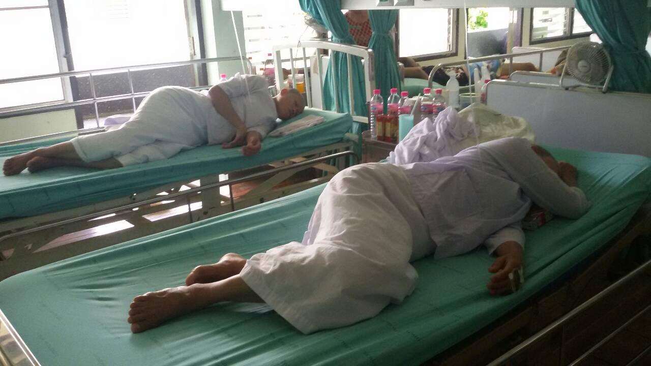 "จนกระทั่งช่วงเย็นมีอาการเวียนหัว เมื่อย หายใจหอบ พระลูกวัดบางราย ท้องร่วงไม่หยุด จนกระทั่งถึงเช้า อาการหนักขึ้น จึงแจ้งขอความช่วยเหลือ นำส่งโรงพยาบาล รวม 15 ราย เชื่อว่าน่าจะมีเห็ดพิษปะปนมา จนทำให้เกิดอาการป่วยดังกล่าว" พระสมัย กล่าว