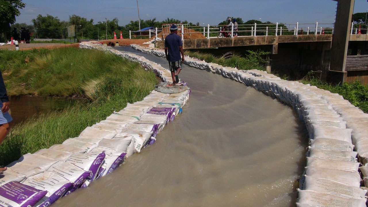 ไอเดียบรรเจิด!! นายก อบต.บ้านหม้อ คิดแหวกแนวช่วยชาวนาสู้ภัยแล้ง นำเครื่องสูบน้ำ สูบจากแม่น้ำเจ้าพระยาขึ้นมาใช้ โดยใช้กระสอบทรายเรียง 4 กม. เพื่อทำเป็นคลองส่งน้ำลงพื้นที่นา โดยได้รับความร่วมมือจากสำนักชลประทานสระบุรี และ มทบ.13