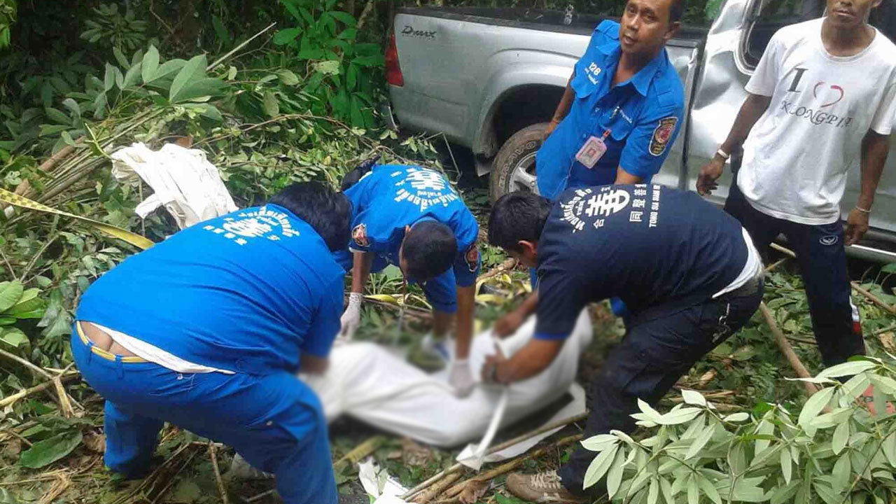 ดาบ ตชด.43 ซิ่งปิกอัพเกิดพลัดตกเหว ช่วงโค้งหมีตาย เส้นทางนาหม่อม-หาดใหญ่ จนท.ตร.พร้อมมูลนิธิต้องใช้เชือกผูกโยงโรยตัวลงไปช่วยเหลือผู้บาดเจ็บสาหัส ส่วนคนในรถเสียชีวิตติดคาซากรถ คาดน่าจะเสียหลักก่อนพุ่งตกเหวลึก...