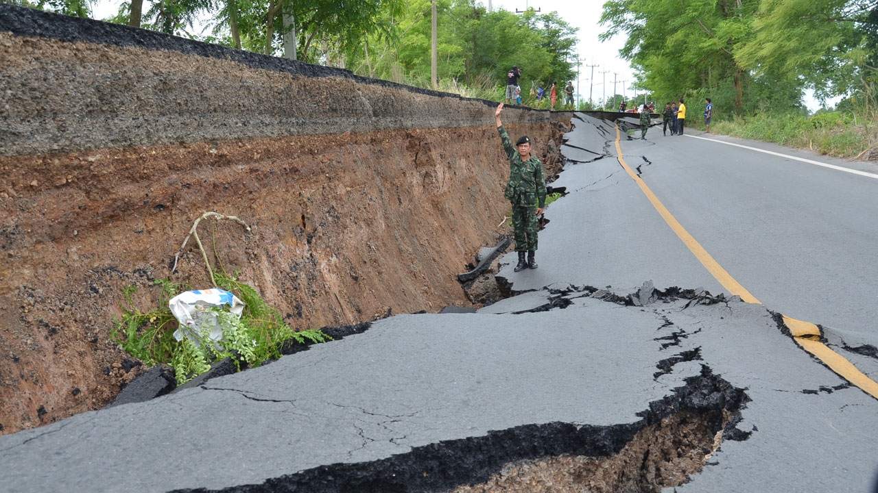 13.12น.ภัยแล้งพ่นพิษ! ถนนทรุดตัวยาวร่วม 300 เมตร ลึกประมาณ 4-5 เมตร หลังน้ำในคลองระพีพัฒน์ลดต่อเนื่อง เจ้าหน้าที่ปิดการจราจรชั่วคราว ชาวบ้านหวั่น ทรุดอีกจะเป็นอันตรายต่อผู้สัญจรผ่านไปมา