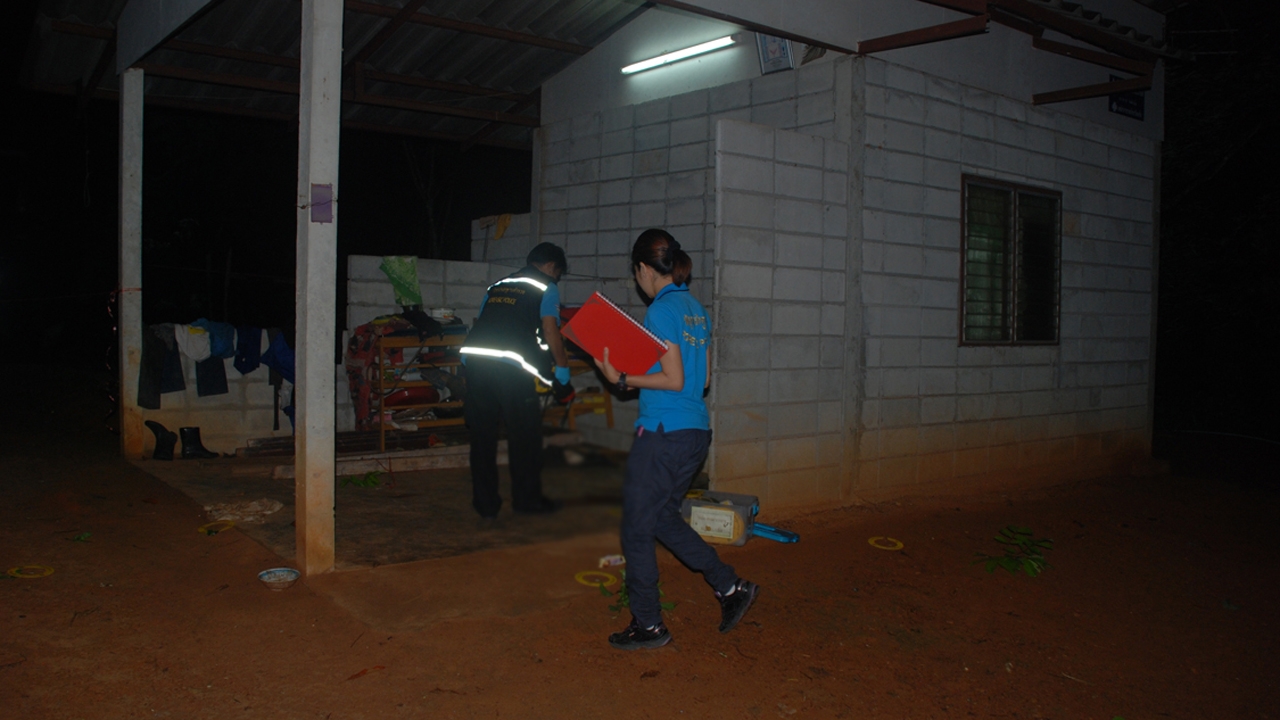 เมื่อเวลา 00.05 น. วันที่ 6 ก.ค. 2558 ร.ต.ท.อัทธ์ ไพสาลี ร้อยเวร สภ.เมืองตรัง รับแจ้งเหตุ มีคนโดนยิงได้รับบาดเจ็บสาหัส ที่บ้านหลังหนึ่ง ในพื้นที่ ต.บ้านโพธิ์ อ.เมือง จ.ตรัง จึงรายงานให้ผู้บังคับบัญชาทราบแล้วไปที่เกิดเหตุ พร้อมด้วย พ.ต.ท.ภูมิ บาลทิพย์ รอง ผกก.(ป) สภ.เมืองตรัง พ.ต.ต.สิทธินันท์ พันธ์คีรี สวป.สภ.เมืองตรัง พร้อมชุดสืบ และประสานไปยัง เจ้าหน้าที่พิสูจน์หลักฐาน จ.ตรัง ที่เกิดเหตุเป็นบ้านอิฐชั้นเดียว โดยเป็นบ้านที่สำนักงานกาชาด จ.ตรัง สร้างขึ้นเพื่อมอบให้กับผู้ยากไร้ด้อยโอกาส เพื่ออยู่อาศัย มีนางน้อย (นามสมมติ) อายุ 58 ปี เป็นเจ้าของบ้าน
