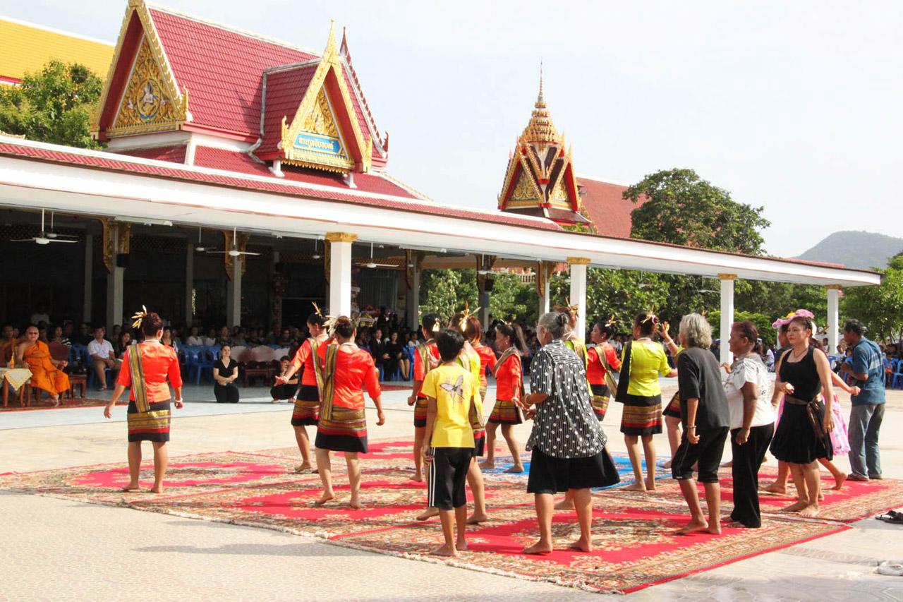 แต่ที่ตื่นตาตื่นใจ และทำให้งานศพกับกลายเป็นงานครึกครื้นรื่นเริง เมื่อเพื่อนร่วมวงในรุ่นราวคราวเดียวกันกว่า 10 คนที่ยังมีชีวิตอยู่ ได้แต่งกายชุดหางเครื่องย้อนยุคสีสวยสดใส ออกมาเต้นส่ายสะโพกโยกย้ายให้กับเพื่อนผู้ล่วงลับไปเป็นครั้งสุดท้าย ทำเอาวัยรุ่นหนุ่มสาว ที่มาร่วมงานต่างพากันยกนิ้วยอมแพ้นักเต้นรุ่นราวคราวแม่ ตลอดจนผู้ร่วมงานได้ปรบมือเสียงดังกึกก้อง