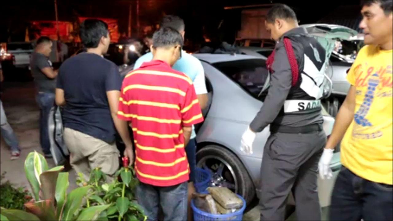เมื่อเวลาประมาณ 21.00 น.วันที่ 10 ก.ค. ตำรวจสะเดาได้รับรายงานจากแหล่งข่าวว่า จะมีเครือข่ายขนยาเสพติดขนลักลอบขนกัญชาออกนอกประเทศ พ.ต.อ.กิตติชัย สังขถาวร ผกก.สภ.สะเดา จึงได้สั่งการให้ พ.ต.ท.วีระศักดิ์ เดชประมวลพล รอง ผกก.สส.สภ.สะเดา พ.ต.ต.รุ่งฤทธิ์ สุดแป้น สวป.สภ.สะเดา พ.ต.ต.ปกรณ์ แก้วฤทธิ์ สวป.สภ.สะเดา นำกำลังติดตามสอบสวนหาข่าวจนพบรถต้องสงสัยจอดอยู่บริเวณริมถนนซอยผู้ใหญ่กล่อม หน้าบ้านเช่าไม่มีเลขที่ หมู่ 2 ตำบลสำนักขาม อำเภอสะเดา จังหวัดสงขลา พบรถดังกล่าวเป็นรถยนต์เก๋งยี่ห้อโปรตอนซาก้า รุ่นเปอดาน่า หมายเลขทะเบียน WIE 4299 มีนาย WAN BADLISHAM BIN WAN ISMAIL อายุ 44 ปี ชาวมาเลเซีย เป็นคนขับตรวจค้นภายในรถพบกัญชาแห้งอัดแท่ง หุ้มด้วยพลาสติกใสอย่างดีซุกซ่อนอยู่ในช่องลับที่ทำขึ้นใต้ที่เบาะนั่งหลังรถ จำนวน 40 แท่ง