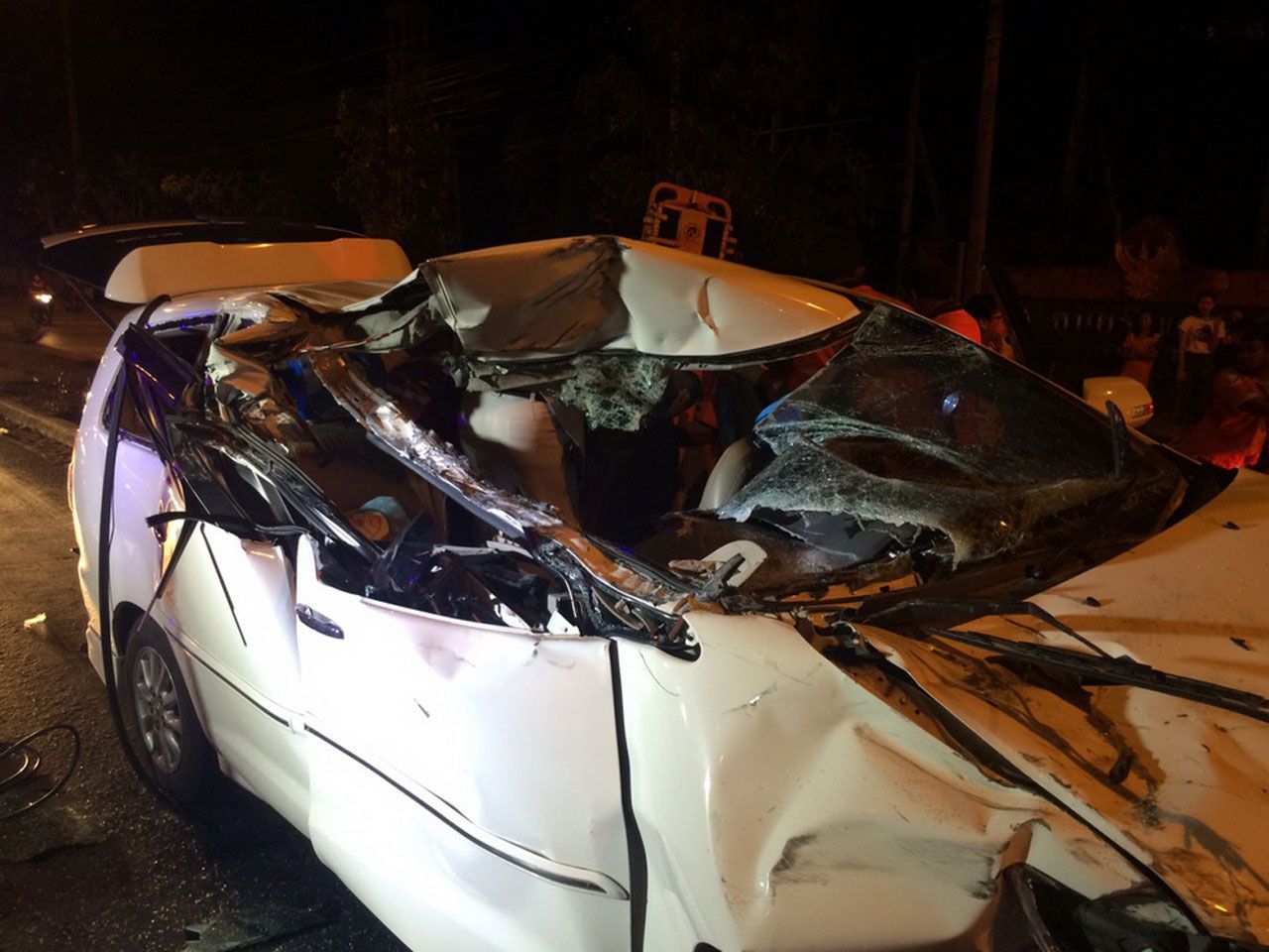 ที่เกิดเหตุพบรถแวนโตโยต้าอินโนว่า สีขาว ทะเบียน ขข 5247 นครราชสีมา พุ่งชนท้ายรถบรรทุกสิบล้อ อีซูซุ ทะเบียน 83-2030 นครราชสีมา โดยบริเวณล้อหลังด้านซ้ายโดนรถยนต์ด้านคนขับพุ่งเสียบเกือบครึ่งคัน ล้อรถด้านซ้ายพุ่งเกยบนเกาะกลางถนน มีคนได้รับบาดเจ็บอยู่ในรถทั้งหมด 10 คน จึงให้เจ้าหน้าที่ช่วยกันลำเลียงส่ง รพ.ด่านขุนทด สำหรับรายชื่อผู้บาดเจ็บสาหัส 6 คน ส่งตัวไปรักษาต่อที่ รพ.มหาราชนครราชสีมา ได้แก่ นายสมศักดิ์ ปอมขุนทด อายุ 49 ปีบ้านเลขที่ 51/1-3 ม.1 ต.หนองบัวโคก อ.จัตุรัส จ.ชัยภูมิ คนขับรถแวนนายพงษ์ธร ช่วยกลาง อายุ 24 ปี นายสรศักดิ์ บามขุนทด อายุ 28 ปี นายณัฐพล พิมพ์ศักดิ์ อายุ 25 ปี นายวีระ ยิ้มย่อง อายุ 21 ปี นายมงคล โกธรรัมย์ อายุ 29 ปี และบาดเจ็บเล็กน้อย 4 คน ได้แก่ นายสุนทร มับสันเทียะ อายุ 37 ปี น.ส.คัทลียา สุขสิน อายุ 16 ปี ด.ช.ทวีชัย ปอมขุนทด อายุ 7 ขวบ บุตรชายนายสมศักดิ์ และหญิงสาวไม่ทราบชื่อ