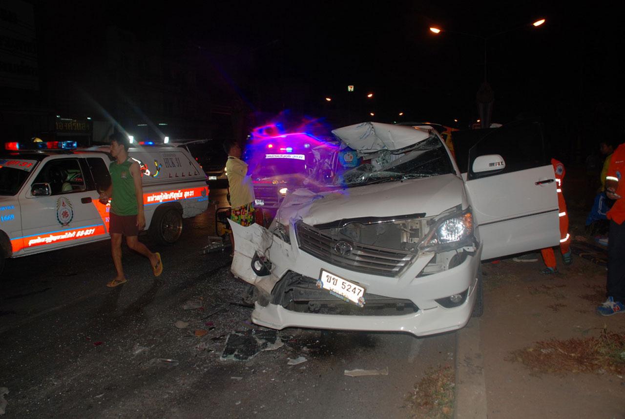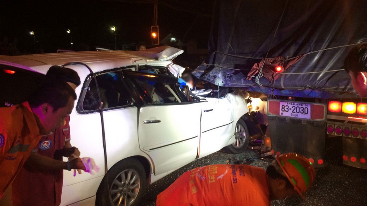 เกิดอุบัติเหตุ รถแวนเพิ่งพาลูกน้องกลับจากงานเลี้ยงฉลอง พุ่งชนท้ายรถสิบล้อกลางสี่แยกไฟแดง บริเวณถนนสีคิ้ว-ชัยภูมิ ส่งผลให้มีผู้ได้รับบาดเจ็บ 4 ราย สาหัสอีก 6 ราย ตอนกลางดึก...