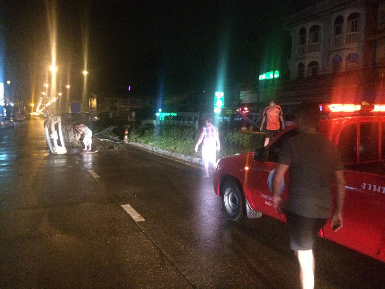 เมื่อเวลา 02.00 น. วันที่ 12 ก.ค. 58 พ.ต.ท.สุขสวัสดิ์ บัวอิ่น สารวัตรเวร สภ.เมืองนครพนม รับแจ้งเกิดอุบัติเหตุรถยนต์พลิกคว่ำ ที่ถนนกลางเมืองนครพนม บริเวณหน้าธนาคารเพื่อการเกษตรและสหกรณ์นครพนม มีผู้ได้รับบาดเจ็บและเสาฟ้าส่องสว่าง ได้รับความเสียหาย จึงประสานเจ้าหน้าที่เกี่ยวข้อง พร้อมชุดกู้ชีพโรงพยาบาลนครพนม ไปตรวจสอบให้การช่วยเหลือ