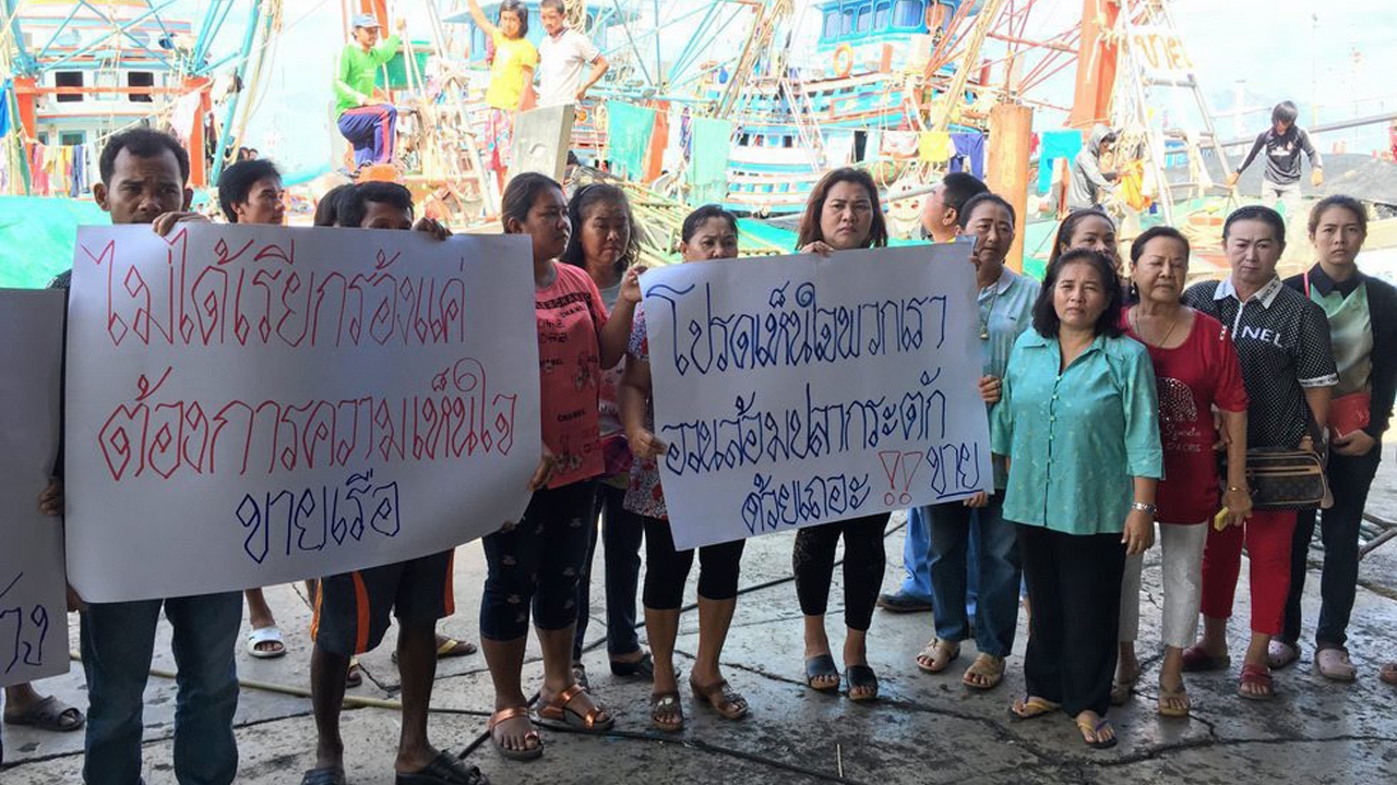 เจ้าของเรือประมงโอดครวญเจอฤทธิ์แรงงานต่างด้าวรับเงินล่วงหน้าแล้วไม่ยอมทำงานต่อ หลังยื่นเรื่องทำเรือถูกต้อง แต่ขาดแคลนลูกเรือทำให้ออกทะเลหาปลาไม่ได้ วอนขอรัฐบาลเปิดจดทะเบียนอีกรอบ ด้านประมงจังหวัดนครศรีธรรมราชเผย ยังมีเรืออีก 80 เปอร์เซ็นต์ผิดกฎหมาย ยืนยันไม่มีการผ่อนผันอีกแล้ว ขณะที่ผู้ประกอบการเรือปลากะตัก จ.ระยอง 30 รายรวมตัวถือป้ายขอความเห็นใจ หมดทางทำมาหากินจนต้องประกาศขายเรือทิ้ง