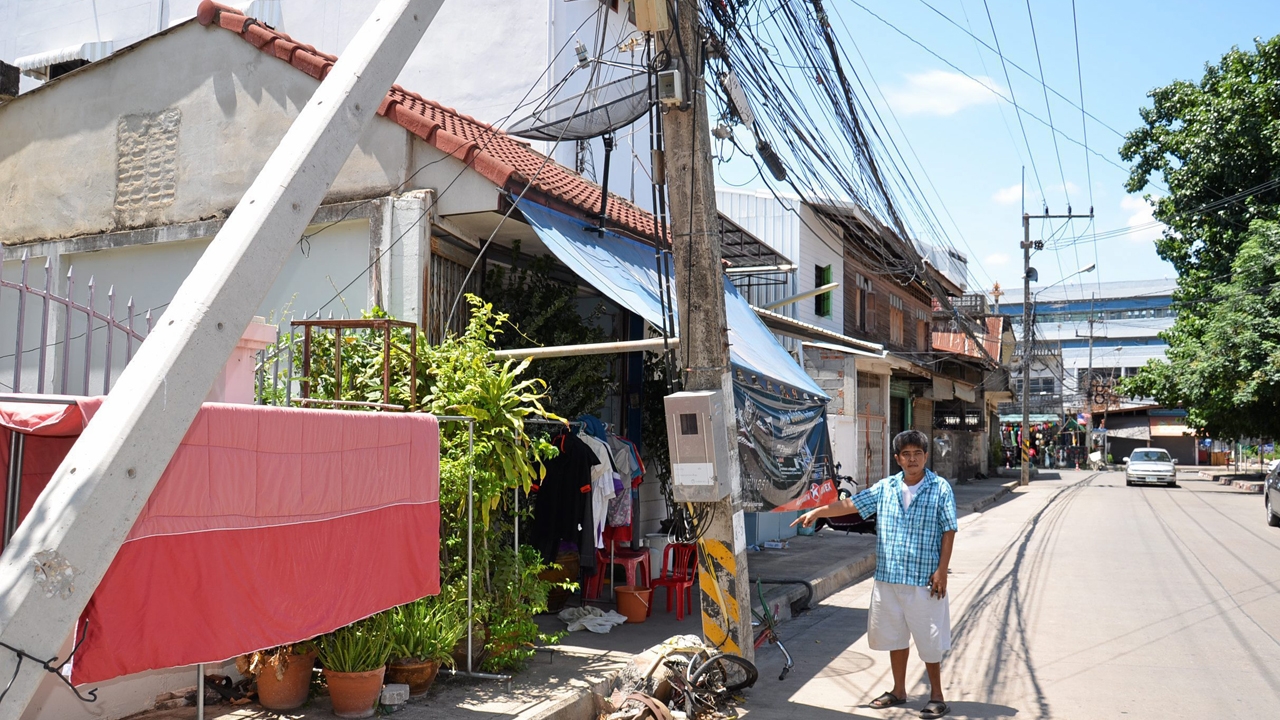 นางวิไลวรรณ เจริญกิจ อายุ 53 ปี เจ้าของร้านซัก อบ รีด เปิดเผยว่า ค่ำวันที่ 6 มิ.ย.ที่ผ่านมา ขณะที่ตนดูทีวีอยู่ในบ้านได้ยินเสียงคล้ายรถชนสิ่งใดสิ่งหนึ่งที่หน้าบ้าน แต่ไม่กล้าออกมาดูเพราะดึกแล้ว กระทั่งตื่นเช้ามาเพื่อนบ้านที่พักอยู่ฝั่งตรง กันข้ามกับบ้านของตนเล่าให้ฟังว่า มีรถกระบะวีโก้เฉี่ยวชนกับรถจักรยานของแขกขายถั่ว ก่อนพุ่งชนกับเสาไฟฟ้าหน้าบ้านตน ความแรงทำให้ซากจักรยานมุดเข้าไปอยู่ใต้เสาไฟ เหมือนกับเอาซากจักรยานไปหนุนเสาไฟฟ้าไว้ ส่วนแขกขายถั่วคนปั่นจักรยาน กระโดดลงจากรถได้ทันทำให้ได้ รับบาดเจ็บเล็กน้อย ส่วนคนขับรถยนต์กระบะไม่ได้ รับบาดเจ็บอะไร หลังจากตำรวจรับแจ้งก็มาตรวจสถานที่เกิดเหตุ ก่อนแจ้งให้เจ้าหน้าที่การไฟฟ้าส่วนภูมิภาคทราบ ต่อมาเจ้าหน้าที่การไฟฟ้าได้เข้ามาตรวจความเสียหาย แล้วนำเอาเสาคอนกรีตมาค้ำไว้อย่างที่เห็น
