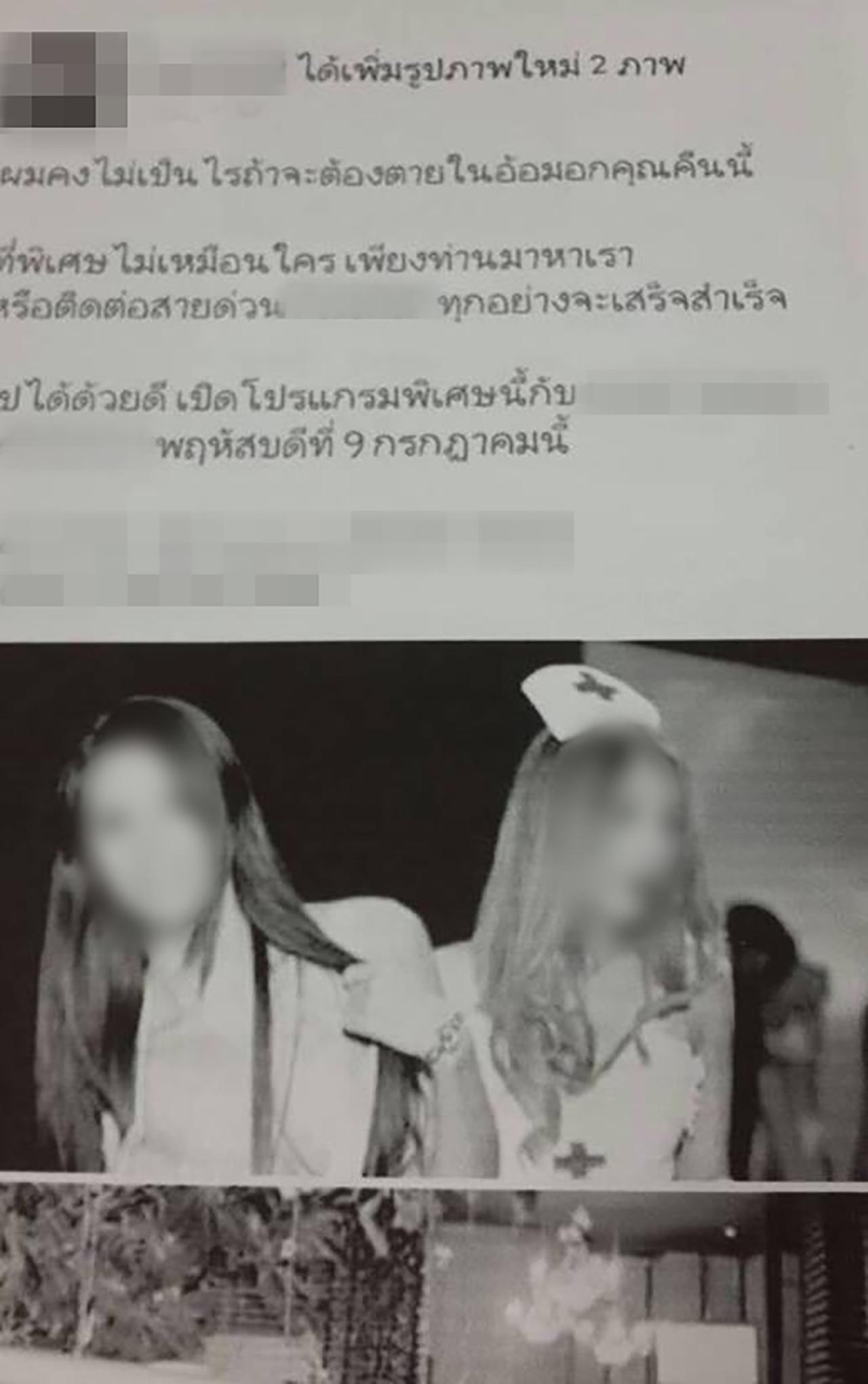 ด้วยเหตุนี้ จึงร้อนรนไปถึงสมาคมพยาบาลแห่งประเทศไทย ได้เข้าแจ้งความร้องทุกข์กับเจ้าหน้าที่ตำรวจ สน.วังทองหลาง เพื่อเอาความกับสถานบันเทิงชื่อดัง เนื่องจากมีภาพเผยแพร่ทางเฟซบุ๊กในเชิงดูหมิ่นอาชีพพยาบาลอย่างชัดเจน โดยมีบรรดาสาวๆ อยู่ในชุดบิกินี่ ใส่หมวกและมีอุปกรณ์คล้ายกับพยาบาล