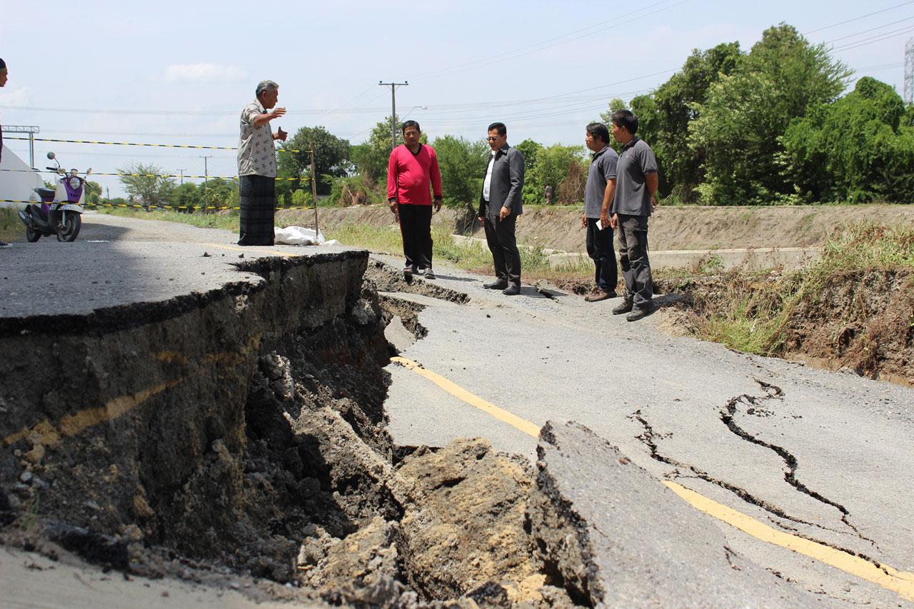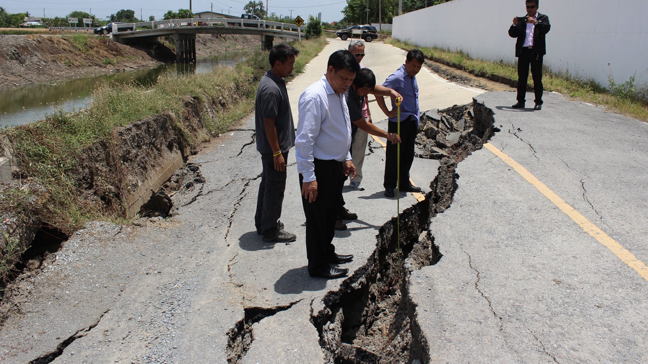 ว่าที่ ร.ต.อภินันท์ เผือกผ่อง นายอำเภอบางบัวทอง จากการตรวจสอบ พบว่าพื้นถนนได้รับความเสียหาย ใช้การไม่ได้ จึงให้เจ้าหน้าที่นำเชือกมากั้นไว้ เกรงว่าประชาชน มองไม่เห็นจะได้รับอันตราย และประสานงาน หน่วยงานที่เกี่ยวข้อง ดำเนินการซ่อมแซมให้ใช้การได้อย่างเร่งด่วนแล้ว