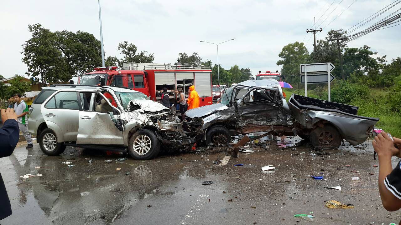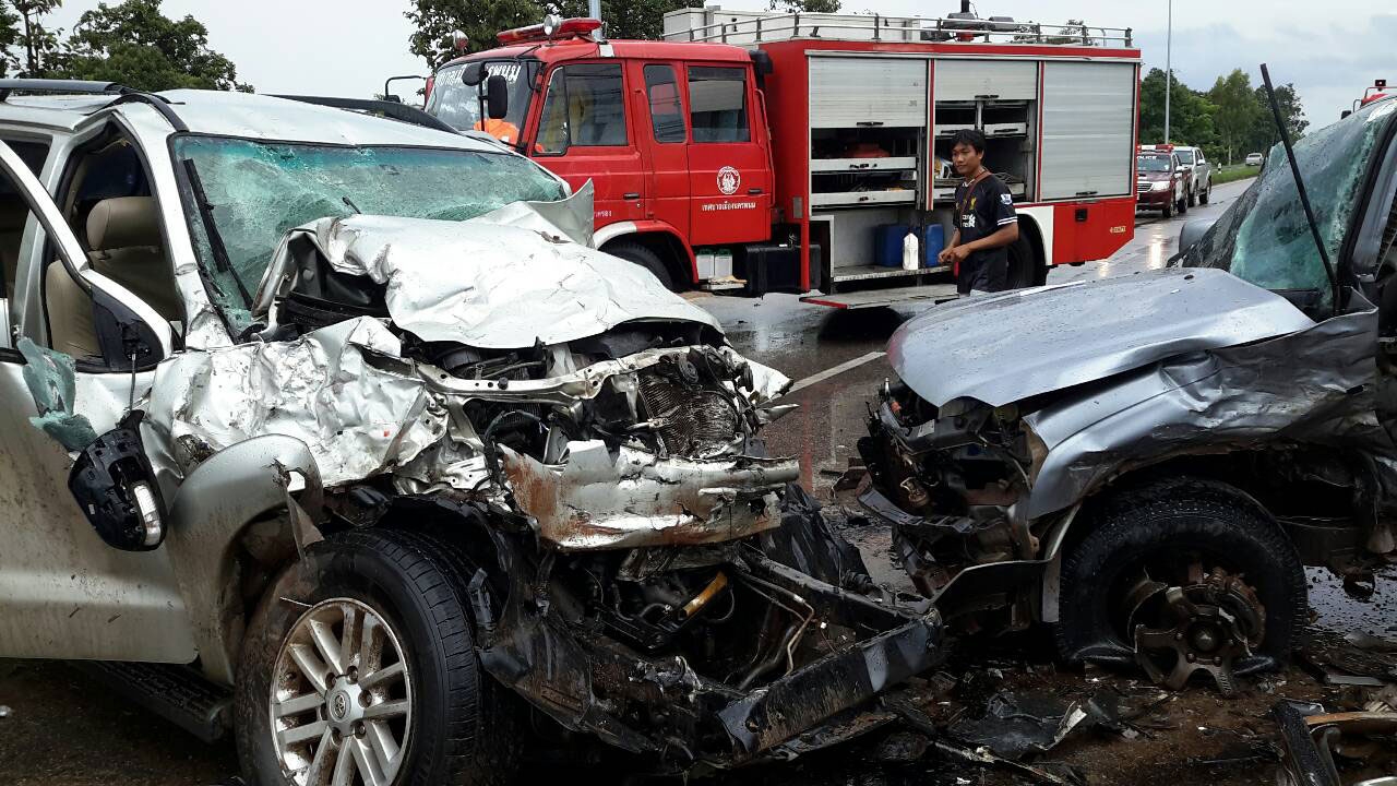 ฝนตกหนักถนนลื่น กระบะหนุ่มใหญ่ซิ่งฝ่าสายฝนเสียหลักพุ่งข้ามเกาะชนเข้ากับรถฟอร์จูนเนอร์ของคณะผู้บริหารบริษัทมิชลิน ที่วิ่งสวนทางหลังกลับจากดูโรงงานยางพาราทำให้มีผู้เสียชีวิต 1 รายบาดเจ็บสาหัส 3 คน จนท.เตือนงดใช้ความเร็งช่วงฝนตกหนัก...