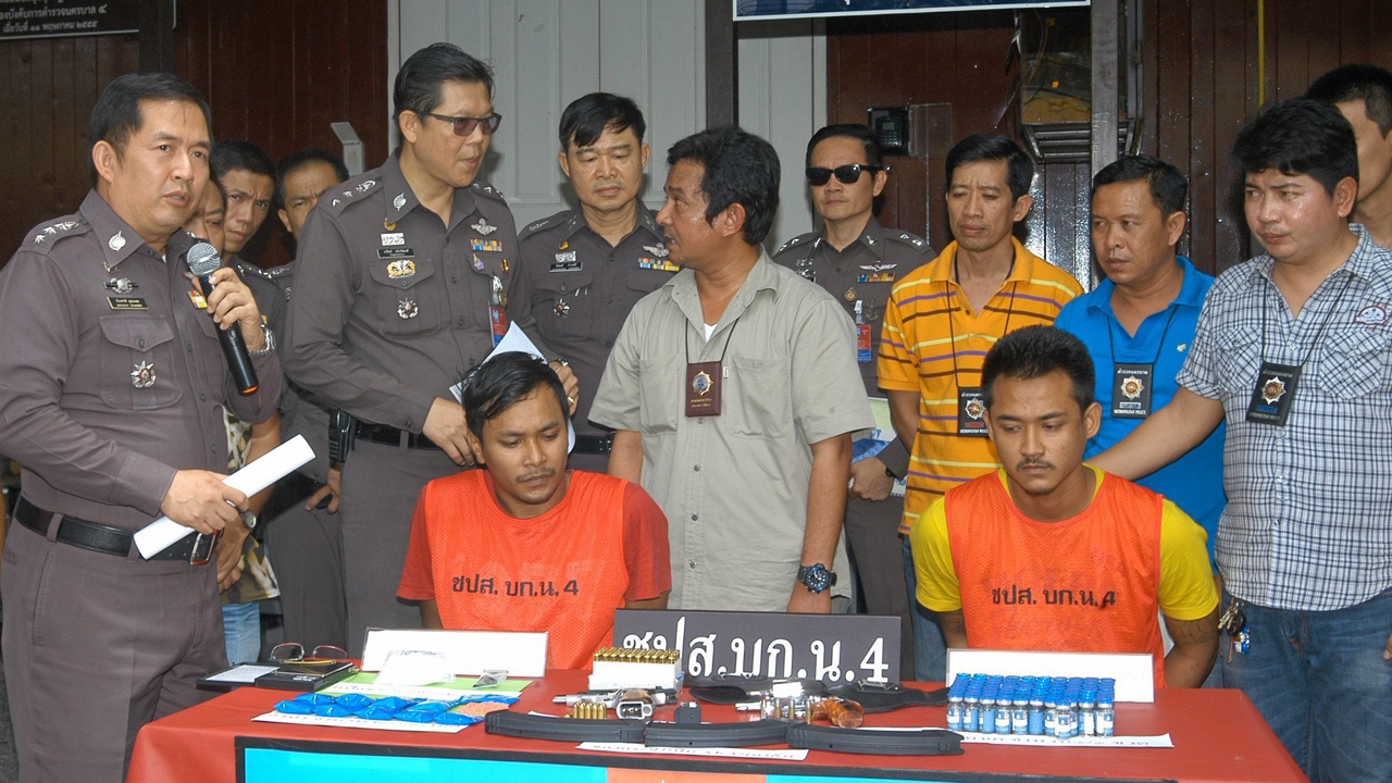 ปส.บก.น.4 รวบ 2 ผู้ต้องหาค้ายาเสพติด เครือข่าย “แบงค์ วัดตากล่ำ” พร้อมยาบ้า 2,000 เม็ด ยาไอซ์ 102.6 กรัม ยาเค 81 ขวด ปืน 2 กระบอก กระสุนอีก 62 นัด หลังจับกุมลูกสมุนที่ไปขายยาเคให้นักเที่ยว และส่งฟ้องศาลไปก่อนหน้า แล้วขยายผลตามจับ 2 ผู้ต้องหา โดย 1 ใน 2 เป็นน้องชายแบงค์ หัวโจกที่ยังอยู่ระหว่างการหลบหนี