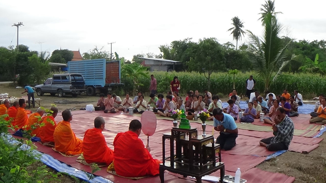 ชาวบ้าน อ่างทอง รวมตัวทำบุญขอฝนเทวดา พร้อมปั้นหุ่นนายเมฆ นางฝน ร่วมเพศ วางไว้ที่ทางสามแพร่ง เพื่อให้เทน้ำลงมาชะล้าง และช่วยชาวนาได้มีน้ำเลี้ยงต้นข้าว หลัง ครม.ห้ามสูบน้ำ ต้นข้าวใกล้ตาย