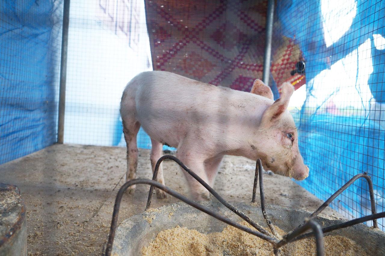 นายเกษม เจ้าของฟาร์ม เล่าว่า ก่อนหน้านี้ช่วงปลายเดือนที่ผ่านมา ตนได้ลงทุนซื้อหมูลูกพันธุ์ลาร์จไวท์ อายุประมาณ 1.5-2 เดือน มาจากฟาร์มแห่งหนึ่งใน ต.ท่าฉนวน อ.กงไกรลาศ จ.สุโขทัย จำนวน 68 ตัว ราคาตัวละ 1,000 บาท เพื่อเลี้ยงขุนเป็นหมูโตส่งขาย ปรากฏว่า เมื่อเลี้ยงมาได้เพียง 2 สัปดาห์ ลูกหมูบางตัวเริ่มมีอาการเซื่องซึม กินอาหารน้อยลง และท้องเสียอย่างรุนแรง จนตายไปแล้ว 2 ตัว ตนจึงรีบแจ้งไปที่สำนักงานปศุสัตว์ จ.สุโขทัย เพื่อให้เข้ามาตรวจสอบเฝ้าระวัง และพ่นยาฆ่าเชื้อทำความสะอาดคอกหมูใหม่ทั้งหมด แต่ปรากฏว่า ก็ยังมีลูกหมูทยอยตายเพิ่มอีกถึง 25 ตัว ตนจึงได้แจ้งสำนักงานปศุสัตว์และส่งซากลูกหมูไปตรวจที่ห้องปฏิบัติการอีกครั้ง พบเชื้อโรคอหิวาต์สุกร และโรค PRRS ซึ่งเป็นเชื้อไวรัสติดต่อทางระบบสืบพันธุ์และทางเดินหายใจในสุกร สามารถติดต่อกันได้ง่าย โดยเฉพาะช่วงเปลี่ยนถ่ายฤดู ทางสำนักงานปศุสัตว์ จ.สุโขทัย จึงจัดส่งเจ้าหน้าที่ มาให้คำแนะนำในเรื่องการดูแลสุขาภิบาลสัตว์ โดยทำความสะอาดฟาร์มทั้งหมด ด้วยวิธีพ่นยาฆ่าเชื้อโรค รวมถึงการกำจัดซากลูกหมูที่ป่วยตายอย่างถูกวิธี โดยวิธีการฝังกลบเท่านั้น ขณะนี้ได้แยกลูกหมูที่ยังต้องเฝ้าระวังดูอาการเพียง 1 ตัวเอาไว้แล้ว ตนได้แยกเอาไว้แล้ว นอกนั้นยังมีอาการปกติ