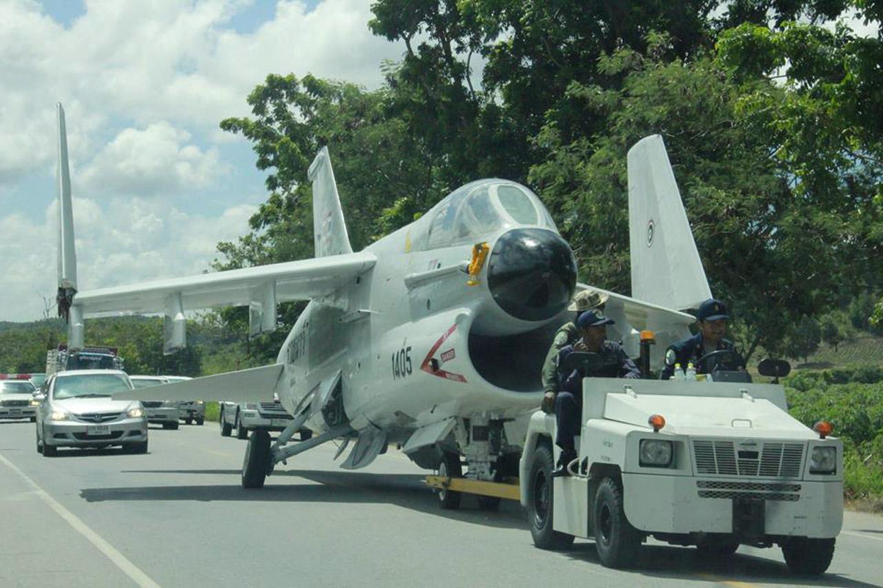 ชาวสัตหีบฮือฮา!! ทร.ทำการเคลื่อนย้าย เครื่องบินโจมตี A-7 ที่ปลดประจำการไปแล้ว เพื่อไปตั้งโชว์ที่พิพิธภัณฑ์โรงเรียนชุมพลทหารเรือ ระยะทางกว่า 30 กิโลเมตร โดยปิดการจราจรทั้งหมด สร้างความตื่นตาตื่นใจให้กับประชาชนผู้พบเห็นอย่างมาก