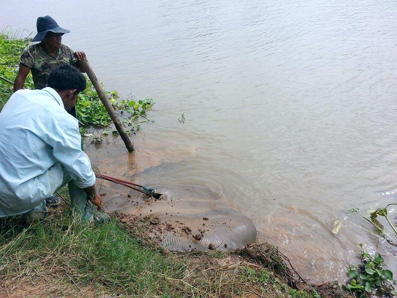 ต่อมานายสมศักดิ์ ทองหุล นักวิชาการประมงชำนาญการ ศูนย์วิจัยและพัฒนาประมงน้ำจืดจังหวัดนครสวรรค์ ได้เดินทางมายังริมแม่น้ำที่นายชาญศักดิ์ มัดปลากระเบนราหูไว้ กล่าวว่า ปลากระเบนตัวนี้ มีขนาดเส้นผ่านศูนย์กลาง 175 ซม. มีน้ำหนักมากกว่า 100 กิโลกรัม ต้องใช้เจ้าหน้าที่หลายคนช่วยยกขึ้นมาจากน้ำ และต้องนำตัวไปรักษา เนื่องจากลำตัวมีแผลหลายจุดจากการโดนฉมวกทิ่มแทง โดยนำไปไว้ในบ่ออนุบาลปลา ที่ศูนย์พัฒนาประมงน้ำจืดจังหวัดนครสวรรค์