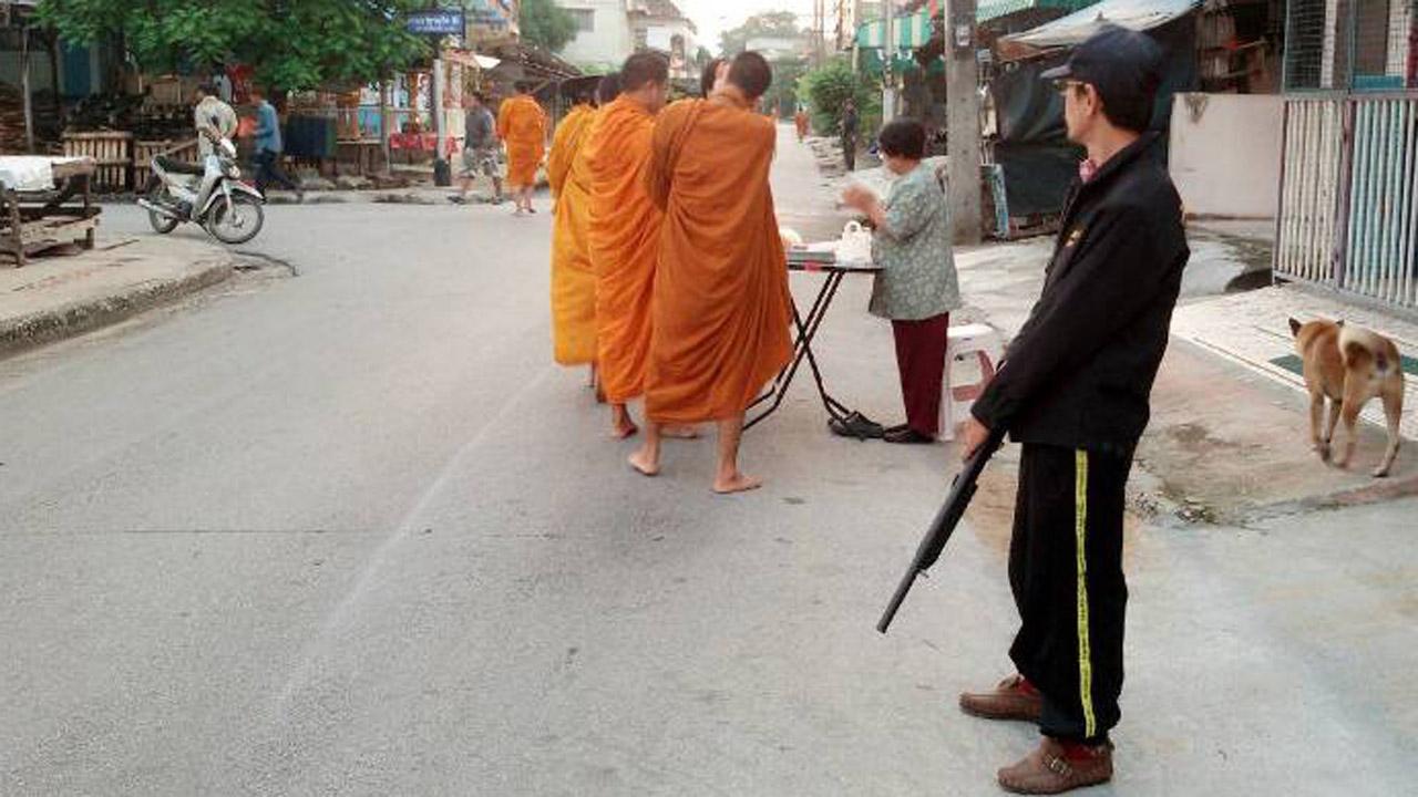 เมื่อเวลา 06.30 น. วันที่ 26 ก.ค. ที่ชุมชนตลาดเก่า เขตเทศบาลนครยะลา เจ้าหน้าที่ทหารหน่วยเฉพาะกิจที่ 16 ยะลา ซึ่งตั้งฐานปฏิบัติการ่ย่อยอยู่ที่วัดยะลาธรรมราม พร้อมด้วย อาสาสมัครชุมชนวิฑูรอุทิศสัมพันธ์เทศบาลนครยะลา ได้ร่วมกันดูแลพระภิกษุสงฆ์ ที่ออกบิณฑบาตเป็นประจำทุกเช้า โดยเจ้าหน้าที่ทหารและอาสาสมัคร ได้ตรวจตราพื้นที่บริเวณโดยรอบไม่ว่า จะเป็นภายในถังขยะที่วางอยู่ริมถนน รถจักรยานยนต์ต้องสงสัย เป็นต้น ซึ่งประชาชนคนไทยพุทธได้ให้ความร่วมมือในการดูแลพระสงฆ์เป็นอย่างดี สำหรับตั้งแต่ปี 2547 จนถึงปัจจุบันมีพระมรณภาพแล้ว 19 รูป บาดเจ็บ 25 รูป