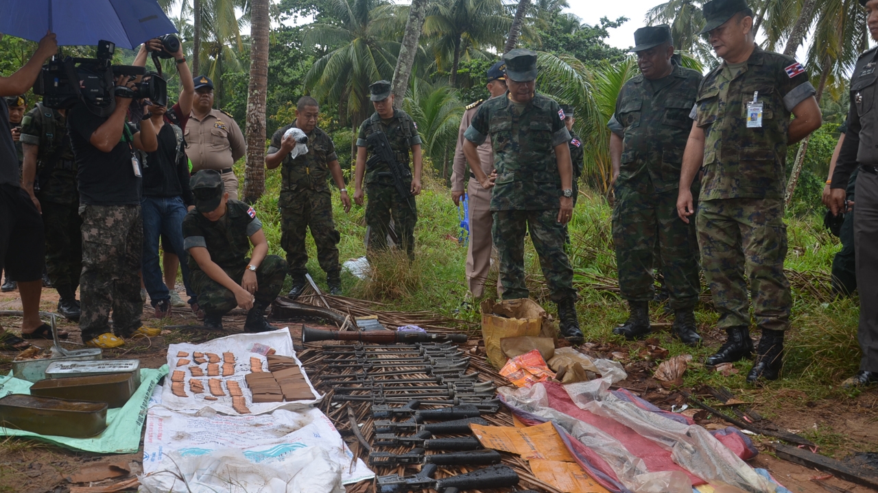 เมื่อเวลา 13.00 น. วันที่ 26 ก.ค. 58 บริเวณหาดสารพัดพิษ ม.3 ต.หาดเล็ก อ.คลองใหญ่ จ.ตราด พลเรือตรีสิริบุญ สุคนธมาน รองผู้บัญชาการ กองกำลังป้องกันชายแดนจันทบุรี-ตราด พร้อมด้วย นาวาเอกอนุชา นาคทับทิบ ผบ.หน่วยเฉพาะกิจนาวิกโยธินตราด พ.ต.อ.วุฒิชัย อนันต์ รอง ผบก.ภ.จว.ตราด พ.ต.อ.จารึก โชติโก ผกก.สภ.คลองใหญ่ นาวาโทสราวุธ บุตรเสรีชัย ผบ.หน่วยเฉพาะกิจนาวิกโยธินที่ 182 และกำลังทหารจากหน่วยเฉพาะกิจนาวิกโยธินที่ 182 พร้อมสื่อมวลชน เข้าตรวจสอบอาวุธสงครามจำนวนมาก หลังจากที่เจ้าหน้าที่ทหารหน่วยเฉพาะกิจนาวิกโยธินที่ 182 สามารถเข้าตรวจยึด กลางดึกของคืนวันที่ 25 กรกฎาคม ที่ผ่านมา ขณะที่มีกลุ่มคนไม่ทราบฝ่าย ทำการขนย้ายอาวุธสงครามขึ้นจากทะเล บริเวณหาดสารพัดพิษ ก่อนที่เจ้าหน้าที่ทหารจะลาดตระเวนมาพบ ทำให้คนร้ายไหวตัวทันหลบหนีไป ทิ้งอาวุธสงครามไว้จำนวนมาก