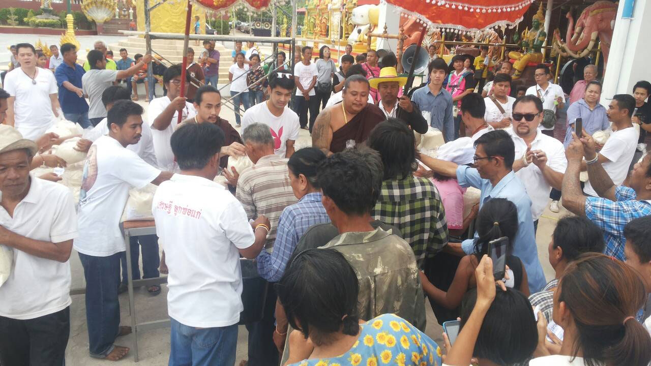 สำนักพยัคฆ์บรรพต จัดงานประจำปี เพื่อทำบุญถวายเทียนพรรษา 5 วัด พร้อมทั้งแจกทานเป็นข้าวสาร 1500 ถุง ให้กับคนจนในเขต อ.อู่ทอง โดยมีพระเอกชื่อดังช่อง 7 สี อ๊อฟ ชนะพล มาร่วมงาน เพื่อให้ อ.พล พยัคฆราช ทำพิธีเป่าทอง 9 แผ่นเสริมบารมี