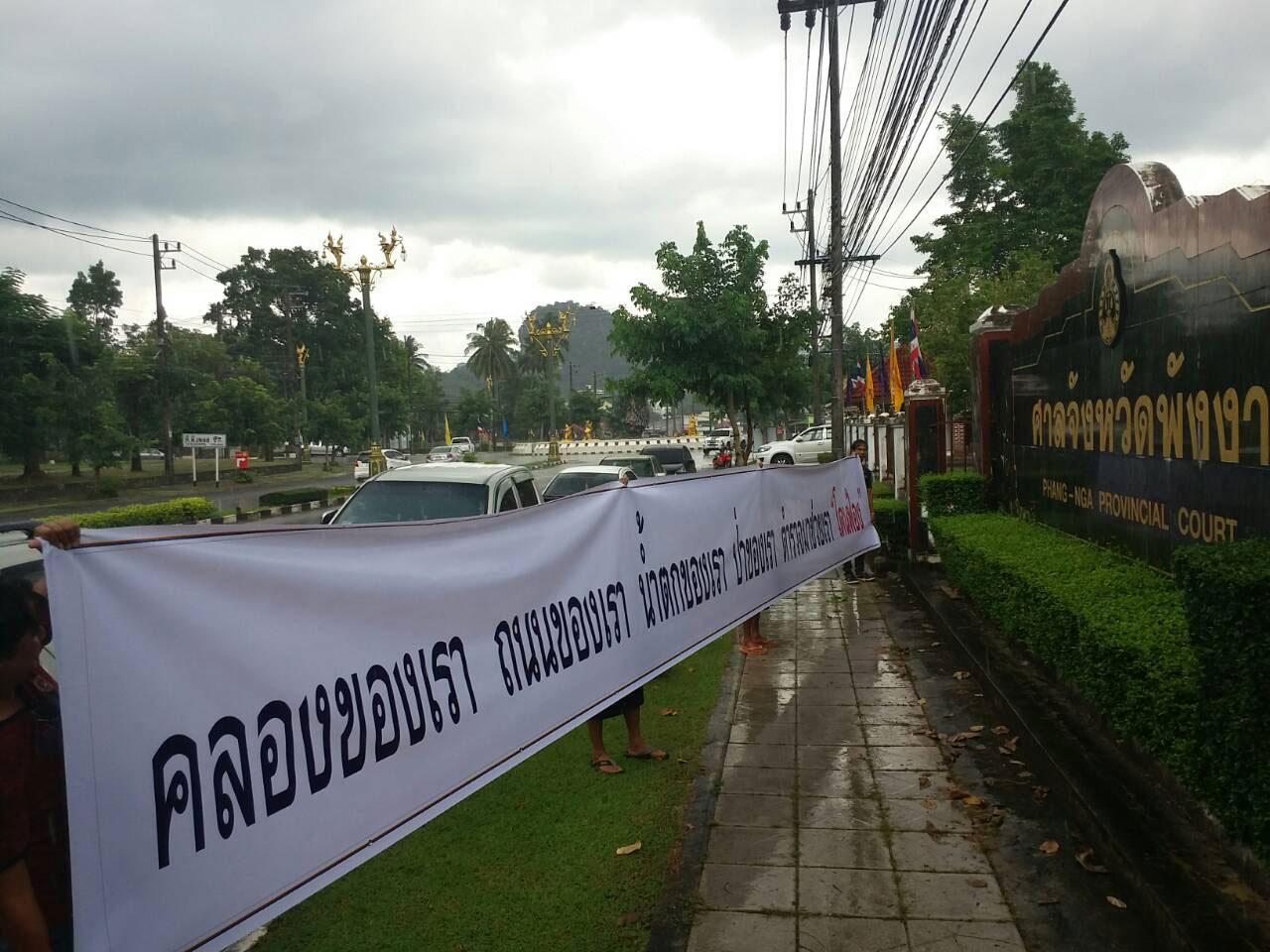 ทั้งนี้ สืบเนื่องจากเจ้าหน้าที่ 5 นาย ของ สภ.ทุ่งคาโงก อ.เมืองพังงา ได้แก่ พ.ต.อ.สัญญา ประกอบผล ผกก.สภ.ทุ่งคาโงก พ.ต.ท.ศิริวัฒน์ อินทร์ยิ้ม รอง ผกก. ร.ต.ท.อานนท์ เอียดเหลือ รอง สวป. ด.ต.ชัยยันต์ ทิพรัตน์ ส.ต.อ.จิรศักดิ์ ขุนนุ้ย ผบ.หมู่งาน ป. ถูกกล่าวหาและถูกฟ้อง ฐานปฏิบัติหน้าที่โดยมิชอบบุกรุกเข้าไปในอสังหาริมทรัพย์ กระทำผิดต่อตำแหน่งหน้าที่ หน่วงเหนี่ยวกักขัง หมิ่นประมาทโดยการให้ข่าวต่อสื่อมวลชน โดยคู่ความ คือ บริษัท กระทะทองกอล์ฟแอนด์รีสอร์ต จำกัด ซึ่งศาลจังหวัดพังงาได้นัดไต่สวนมูลฟ้องนัดแรก ทำให้ชาวบ้านได้รวมตัวกันมาที่หน้าศาลเพื่อให้กำลังใจเจ้าหน้าที่ตำรวจ