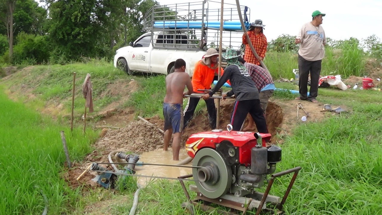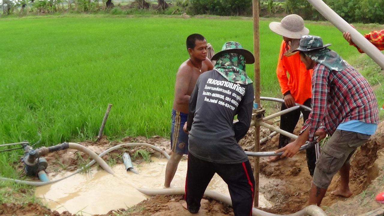 แต่เมื่อต้นข้าวในนาเริ่มแห้งเหี่ยว รอการขุดเจาะบ่อบาดาลจากรัฐบาลไม่ไหว จึงต้องหาเงินและกู้หนี้ยืมสินจากญาติพี่น้องมาขุดบ่อบาดาลเอง ลงทุนจ้างขุดบ่อบาดาลด้วยมือในราคาเริ่มต้นที่บ่อละ 12,000 บาท และหากยังไม่เจอน้ำต้องเพิ่มอีกวาละ 500 บาทจนกว่าจะเจอตาน้ำ เพื่อนำน้ำไปใช้ในการหล่อเลี้ยงต้นข้าวและรอการเก็บเกี่ยวเพื่อสร้างรายได้ต่อไป เพราะถ้าหากยังไม่ลงมือจ้างคนมาขุดบ่อด้วยตนเองก็เท่ากับว่าต้องทิ้งเงินที่ลงทุนทำนาไปแล้วกว่าแสนบาท