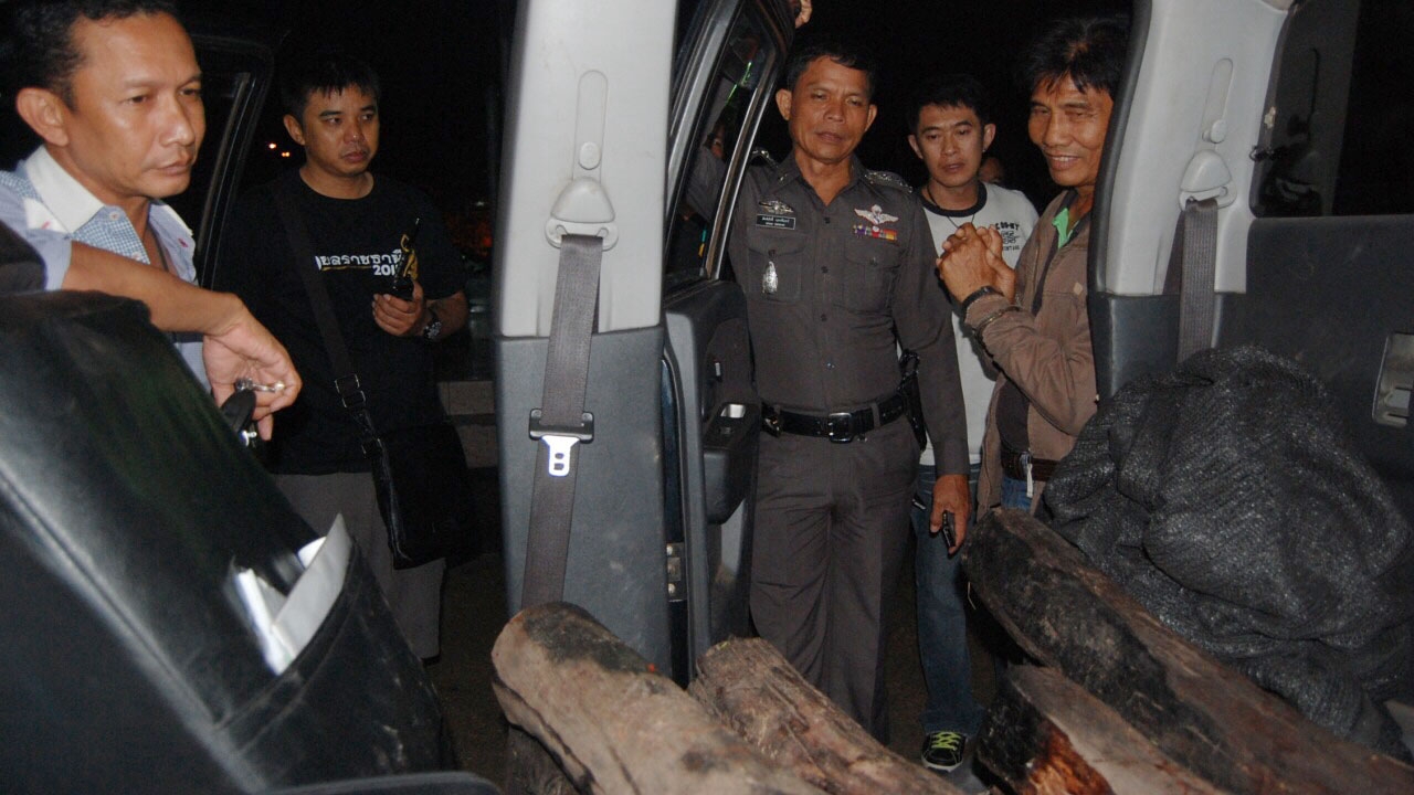 พ.ต.อ.สิทธิศักดิ์ เปิดเผยว่า เจ้าหน้าที่ตำรวจได้รับแจ้งจากสายลับว่า จะมีรถกระบะสีดำ ป้ายทะเบียนอำนาจเจริญ ลักลอบขนไม้พะยูงจาก อ.สำโรง จ.อุบลราชธานี มุ่งหน้าไปจังหวัดอำนาจเจริญ โดยใช้เส้นทางถนนเลี่ยงเมืองอุบลราชธานี จึงนำกำลังดักซุ่มรถต้องสงสัยตามเส้นทางที่สายลับแจ้ง จนพบรถกระบะสีดำ ทะเบียนด้านหน้า กข 4719 อำนาจเจริญ ด้านหลังไม่ติดแผ่นป้ายทะเบียนขับมาด้วยความเร็ว เจ้าหน้าที่ตำรวจจึงได้ส่งสัญญาณให้จอดรถ แต่ไม่เป็นผลกลับเร่งเครื่องหลบหนีทางถนนชยางกูรขาออก มุ่งหน้าจังหวัดอำนาจเจริญ เจ้าหน้าที่ตำรวจจึงได้วิทยุให้สายตรวจตำบลขามใหญ่ ตั้งจุดสกัดบริเวณหน้าตู้ยามขามใหญ่ ถ.ชยางกูร ต.ขามใหญ่ อ.เมืองอุบลราชธานี จนสามารถหยุดรถแล้วทำการตรวจสอบพบไม้พะยูงอยู่ในรถกล่าว