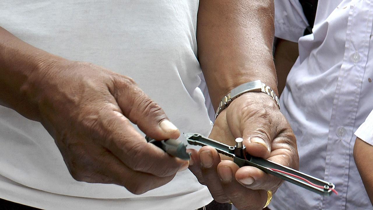 ด้าน นายมงคล ถมศรี ผู้ช่วยผู้ใหญ่บ้าน ได้ทดลองนำของเล่นดังกล่าวมาจี้ใส่แขนตัวเอง พร้อมกับกดสวิตช์ บอกว่าเหมือนถูกไฟช็อต จึงแกะออกดูว่ามีอะไรอยู่ข้างใน พบว่าเป็นตัวจุดไฟเหมือนกับที่จุดเตาแก๊ส เมื่อกดปุ่มก็จะเกิดประจุไฟฟ้าวิ่งออกจากปลายสายไฟ เข้าใจว่าจากประจุบวกวิ่งไปหาประจุลบ จึงเป็นสาเหตุทำให้คนที่ถูกจี้เหมือนถูกไฟช็อต ทั้งนี้ เกรงว่าหากถูกช็อตบ่อยๆ จะมีผลต่อระบบในร่างกายอาจจะทำให้เป็นหมันก็ได้ ซึ่งหลังเกิดเรื่องทางผู้นำชุมชนทั้ง กำนัน ผู้ใหญ่บ้าน รวมถึงตำรวจ ต่างก็พากันออกตรวจสอบตามร้านค้า ซึ่งมีการเก็บออกจากแผงแล้ว แต่ยังต้องประกาศเสียงตามสายให้ช่วยกันสอดส่อง และห้ามจำหน่ายเด็ดขาด