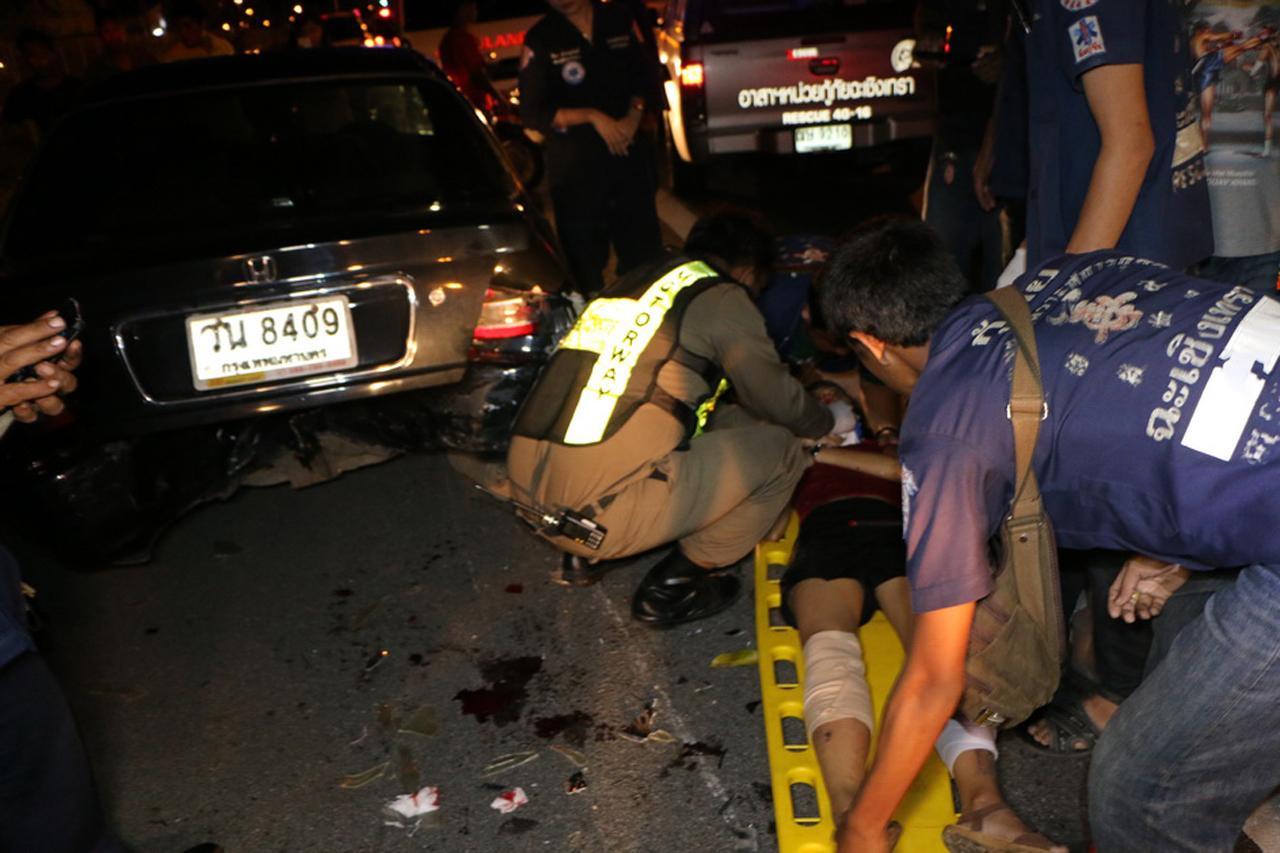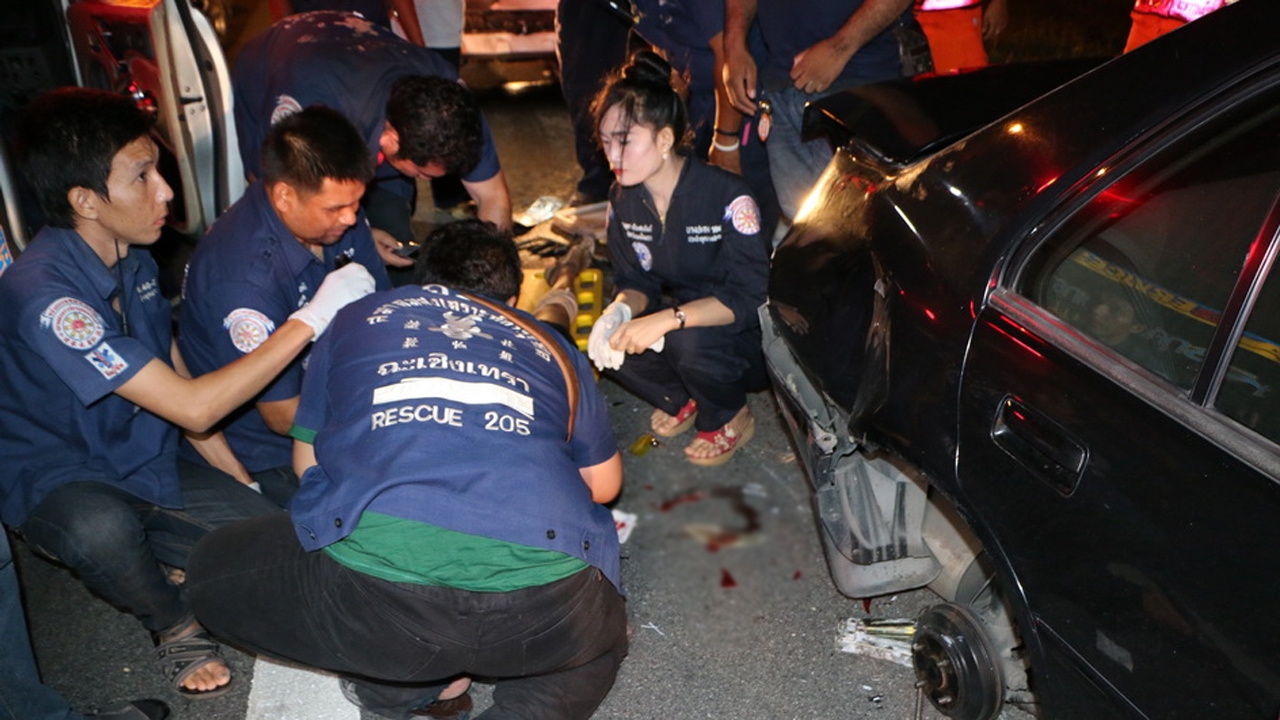 หนุ่มฟิลิปปินส์ขับรถเก๋งพาเพื่อนสาว ไปเที่ยวระยอง ระหว่างทางยางหลังเกิดรั่ว จอดเปลี่ยนยางไหล่บนถนนมอเตอร์เวย์ ระหว่างที่มีพลเมืองจอดแวะช่วยเพื่อนสาว 3 คน อยู่ท้ายรถ จู่ๆ มีรถกระบะขับมาชนทั้งสาม อัดท้ายเก๋ง บาดเจ็บ 3 ราย 2 ใน 3 อาการสาหัส