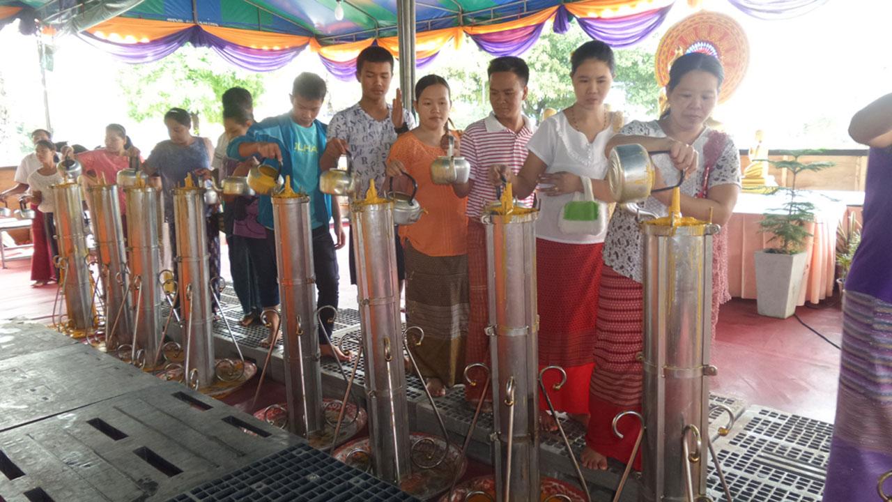 เมื่อเวลา 07.30 น.ของวันที่ 31 กรกฎาคม 2558 ที่วัดศรีบูรณาวาส (วัดโคก) ม.4 ต.โคกขาม อ.เมือง จ.สมุทรสาคร ได้มีประชาชนในพื้นที่ทั้งชาวไทยเชื้อสายรามัญ และชาวมอญ (พม่า) ที่อาศัยอยู่ในพื้นที่ ต.โคกขาม และใกล้เคียง เข้ามาร่วมกันถวายเทียนพรรษา ฟังเทศน์ ฟังธรรม เนื่องในวันเข้าพรรษา ซึ่งผู้ที่มาร่วมทำบุญส่วนใหญ่ต่างก็นำเอาเทียนพรรษา หลอดไฟ และปัจจัยมาถวาย อีกทั้งยังเป็นการร่วมกันทำบุญ เพื่อช่วยเหลือวัดและขอพรจากองค์หลวงพ่อปู่หินแดง ที่เป็นที่นับถือและศรัทธาของประชาชนทั่วไป