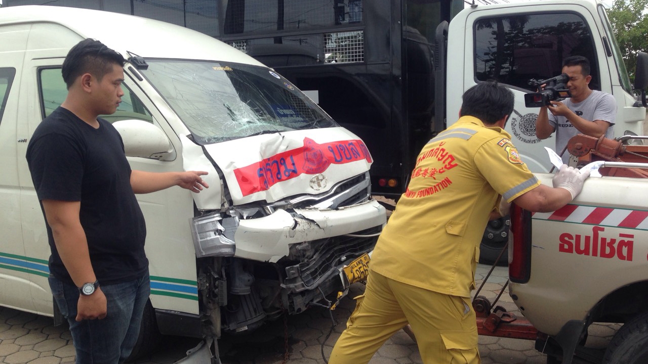 เมื่อเวลา 12.00 น. วันที่ 4 ส.ค.58 พ.ต.ท.บุญเรือง พันธนู พนักงานสอบสวนผู้ชำนาญการพิเศษ สภ.ธัญบุรี จ.ปทุมธานี ได้รับแจ้งเกิดอุบัติเหตุรถตู้โดยสารชนกับรถซาเล้ง มีผู้เสียชีวิต 2 ราย เหตุเกิดบริเวณถนนรังสิต-นครนายก ขามุ่งหน้าไปนครนายก ใกล้จุดกลับรถคลอง 11 ต.บึงน้ำรักษ์ อ.ธัญบุรี จ.ปทุมธานี จึงเดินทางไปตรวจสอบพร้อมด้วยอาสามูลนิธิร่วมกตัญญู