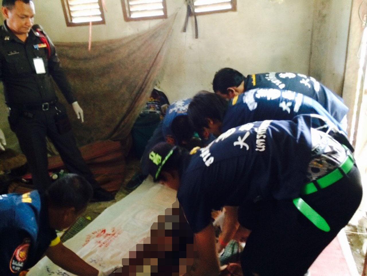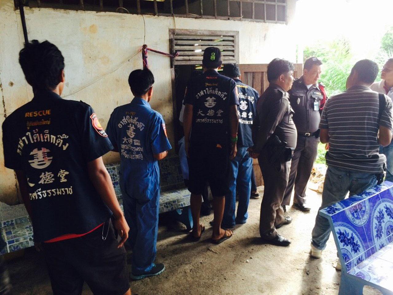 เมื่อเวลา 09.45 น. วันที่ 4 ส.ค. 58 ร.ต.อ.นุกมล สุธีดำรงกุล พนักงานสอบสวน สภ.เชียรใหญ่ จ.นครศรีธรรมราช ได้รับแจ้งเหตุฆ่ากันตาย ที่วัดชัยสุวรรณ หมู่ 2 ต.เสือหึง อ.เชียรใหญ่ จึงพร้อมด้วย พ.ต.อ.วัฒนา ประสมทรัพย์ ผกก. พ.ต.ท.นิวัฒน์ คงด้วง รอง ผกก.ป. พ.ต.ท.ธวัชชัย ดีลิ่น รอง ผกก.สส. พ.ต.ท.บรรจบ สงค์ณรงค์ สว.สส. พ.ต.ท.สายัณห์ หนูยิ้มซ้าย สวป. แพทย์หญิงกฤติยา แก้วเกลี้ยง แพทย์เวร รพ.เชียรใหญ่ และอาสาสมัครมูลนิธิใต้เต็กตึ๊งรุดไปตรวจสอบ