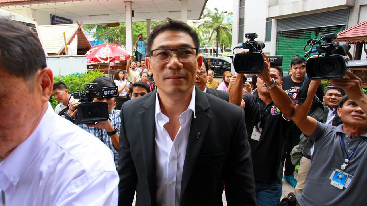 นายชนม์สวัสดิ์ อัศวเหม อดีตนายก อบจ.สมุทรปราการ มีสีหน้ายิ้มแย้มก่อนเข้ารับฟังคำพิพากษาคดีทุจริตการเลือกตั้งสมาชิกสภาเทศบาลนครสมุทรปราการเมื่อปี 42 ที่ศาล จังหวัดสมุทรปราการ โดยศาลฎีกาพิพากษายืนตามศาลอุทธรณ์ ให้จำคุก 1 ปี 6 เดือน โดยไม่รอลงอาญา ถูกเจ้าหน้าที่นำตัวไปควบคุมที่เรือนจำกลางสมุทรปราการทันที.