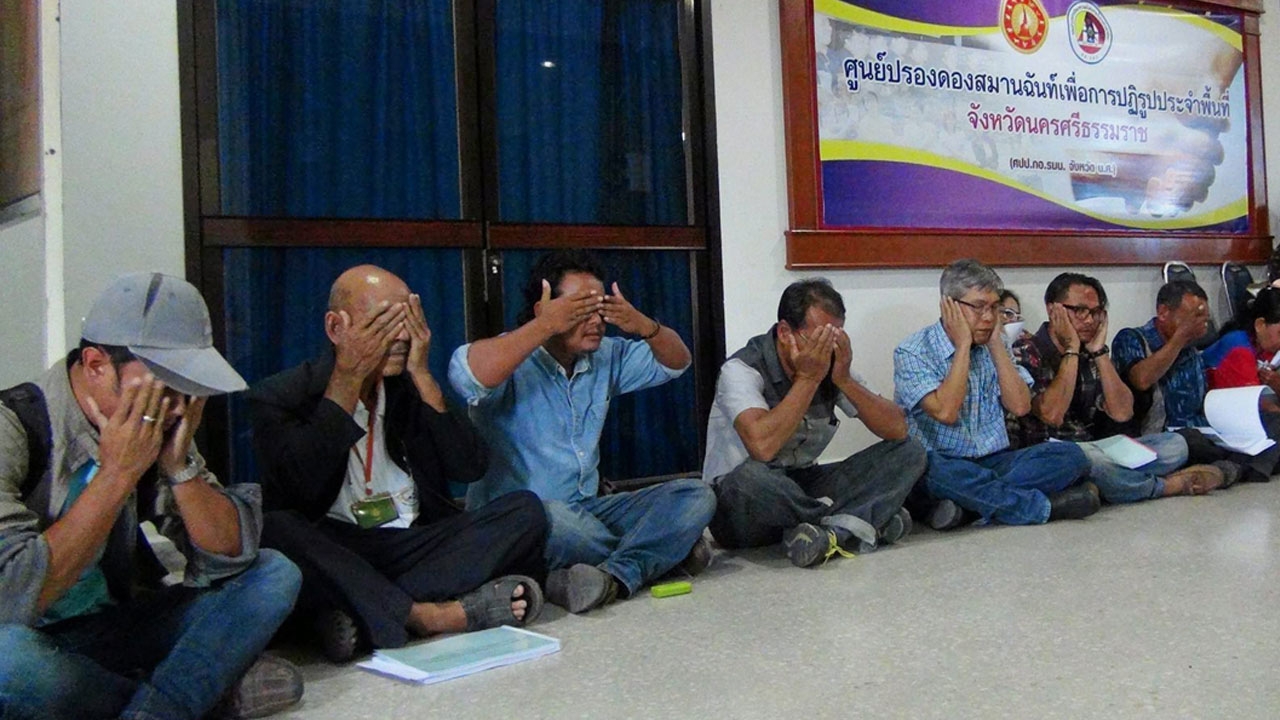 ที่ห้องประชุมศูนย์ปรองดองสมานฉันท์เพื่อการปฏิรูป ศาลากลางจังหวัดนครศรีธรรมราช เมื่อวันที่ 4 ส.ค.ผู้สื่อข่าวรายงานถึงการประชุมคณะกรรมการแก้ไขผังเมืองรวม จ.นครศรีธรรมราช ที่มีการคัดค้านอย่างหนัก โดยเฉพาะภาคประชาสังคมใน อ.ท่าศาลา อ.พระพรหม และ อ.หัวไทร เวลา 13.30 น.ซึ่งเป็นเวลานัดหมายการประชุมท่ามกลางการระดมกำลังเจ้าหน้าที่ทหาร และ อส.เข้ารักษาความปลอดภัยอย่างเข้มงวด ตัวแทนกลุ่มเครือข่ายผู้ยื่นคัดค้านการแก้ไขผังเมืองรวมและผู้สื่อข่าวถูกกันให้อยู่หน้าห้องประชุมห้ามเข้าร่วมรับฟัง โดยก่อนหน้านี้กลุ่มผู้คัดค้านได้ยื่นคำ ร้องที่ขอให้ยกเลิกการแก้ไขผังเมืองฉบับนี้ ให้เหตุผลว่าเอื้อต่อโรงไฟฟ้าพลังงานถ่านหิน และอุตสาหกรรมปิโตรเคมี และเคมีภัณฑ์ ทางกลุ่มผู้คัดค้านได้ถูกขอร้องให้มาร่วมประชุมเพียง 10 คน แต่ถูก จนท.เชิญตัวไปยังห้องกองอำนวยการรักษาความมั่นคงภายใน จ.นครศรีธรรมราช ก่อนที่ทุกคนจะรู้ตัวว่าถูกหักหลัง จึงเดินออกมาประท้วงแสดงสัญลักษณ์ปิดหู ปิดตา และปิดปากที่ถูกห้ามเข้าร่วมรับฟังการประชุมเครือข่ายผู้คัดค้านนำโดยนายทรงวุฒิ พัฒแก้ว ผู้ประสานงานกลุ่มเครือข่ายรักษ์บ้านเกิดท่าศาลา ได้หารือนอกรอบกับ กอ.รมน.จังหวัดนครศรีธรรมราช และผู้แทนมณฑลทหารบกที่ 41 ศูนย์ดำรงธรรมและตัวแทนประชาชนผู้คัดค้าน กระทั่งบรรลุข้อตกลงขอให้ยกเลิกการแก้ไขผังเมืองฉบับนี้ไว้ก่อน และเปิดให้มีกระบวนการมีส่วนร่วมตามความต้องการของพื้นที่ที่ได้รับผลกระทบ เช่นเดียวกับคณะกรรมการสิทธิมนุษยชนแห่งชาติที่แจ้งมายัง จ.นครศรีธรรมราช ให้ยุติเรื่องนี้และให้เริ่มต้นกระบวนการขึ้นใหม่ แต่ปรากฏว่าไม่เป็นไปตามข้อตกลงและมีการเดินหน้าการแก้ไขผังเมืองรวมท่ามกลางการคัดค้านอย่างหนัก ซึ่งมีการตั้งข้อสังเกตว่าเอื้อต่อการใช้พื้นที่ของโรงไฟฟ้าพลังงานถ่านหิน รวมทั้งกักเก็บเคมีภัณฑ์อันตรายที่เกี่ยวข้องกับอุตสาหกรรมขุดเจาะปิโตรเลียมหรือไม่