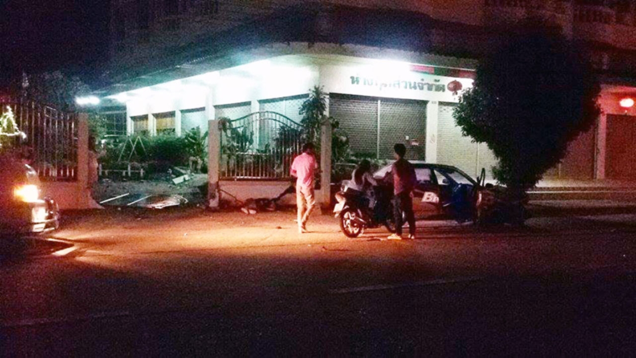 หนุ่มนครพนม ควบเก๋งกลับจากสังสรรค์ เสียหลักแหกโค้ง พุ่งชนทะลุกำแพงคอนกรีต ร่างกระเด็นออกจากตัวรถ กระแทกกำแพงดับ ...