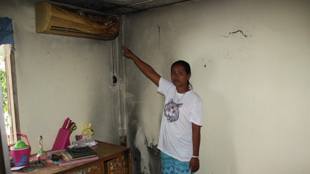 นางสุกัญญา กล่าวอีกว่า ข้าวของที่ถูกไฟไหม้ โดยเฉพาะเสื้อผ้าชุดนักเรียนของลูกสาวกับลูกชาย เสียหายหมด ทำให้ลูกๆ ไม่ได้ไปโรงเรียน เพราะไม่มีเสื้อผ้าใส่ ตู้กับข้าวก็ถูกยกไปไว้นอกบ้าน ข้าวของในห้องครัวถูกเก็บออกไปจากที่เกิดเหตุแล้ว แต่คราบร่องรอยการไหม้ยังอยู่ตามผนังห้องต่างๆ ซึ่งญาติพี่น้องได้มาอยู่เป็นเพื่อน เหตุการณ์ที่เกิดขึ้นทำให้ลูกชายกับลูกสาวกลัวมาก และตนก็หวาดระแวงตลอดเวลา ส่วนเจ้าหน้าที่ที่บอกว่าจะเข้ามาตรวจสอบนั้น ได้โทรมาบอกกับญาติว่าจะเข้ามา ซึ่งตนไม่ทราบว่าเป็นเจ้าหน้าที่จากหน่วยงานไหน แต่ก็ไม่ได้เข้ามา.