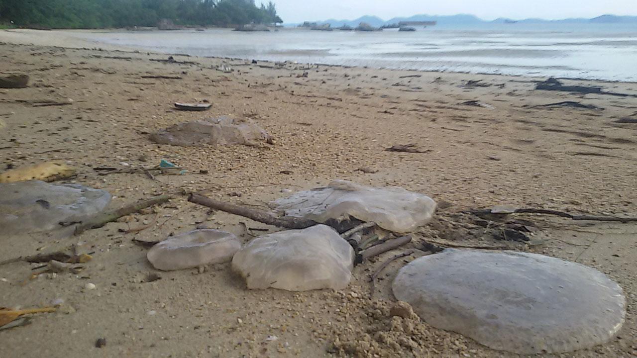 วันที่ 8 ส.ค.58 ผู้สื่อข่าวรายงานว่า พายุฝนที่ตกหนักอย่างต่อเนื่องในหลายพื้นที่ของจังหวัดกระบี่ ทำให้ท้องทะเลมีคลื่นลมแรง ขณะที่ตามแนวชายหาดพื้นที่ท่องเที่ยวในบ้านคลองม่วง ม.3 ต.หนองทะเล อ.เมืองกระบี่ ความยาวกว่า 2 กิโลเมตร คลื่นได้ซัดเอาขยะจากทะเลเข้าหาฝั่งจำนวนมาก พบกองเกลื่อนตามแนวชายหาดซึ่งอยู่บริเวณหน้าเกาะห้อง เขตอุทยานแห่งชาติธารโบกขรณี มีขยะต่างๆ ทั้งเศษไม้ ถุงพลาสติก ขวดน้ำดื่มชิ้นส่วนต่างๆ จากเรือประมง อีกทั้งยังซัดเอาซากแมงกะพรุนขนาดความกว้าง 7-10 นิ้วตายเกลื่อนบริเวณหาด