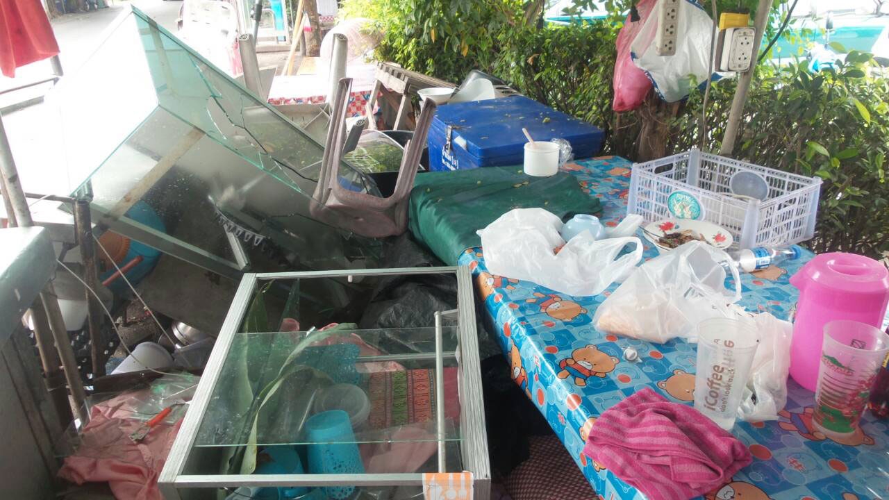 จากการสอบถาม นายดูล บอกว่า ช่วงประมาณเวลา 01.30 น. คืนที่ผ่านมา หลังจากปิดร้านแล้วได้นั่งอยู่ เพื่อเตรียมตัวนอนเฝ้าร้านเหมือนทุกวัน ขณะนั้นตนสังเกตเห็นรถยนต์ขับมาจอดบริเวณเยื้องกับร้าน ก่อนที่จะมีคนลักษณะรูปร่างอ้วน เดินลงมาพังร้านด้วยการถีบตู้กระจกใส่อุปกรณ์ขายส้มตำ 2 ตู้แตกกระจาย ยังดีที่ในขณะนั้นบริเวณนั้นปิดไฟมืดทำให้คนร้ายไม่เห็นตนที่นั่งอยู่ ไม่เช่นนั้นอาจจะถูกทำร้ายก็ได้