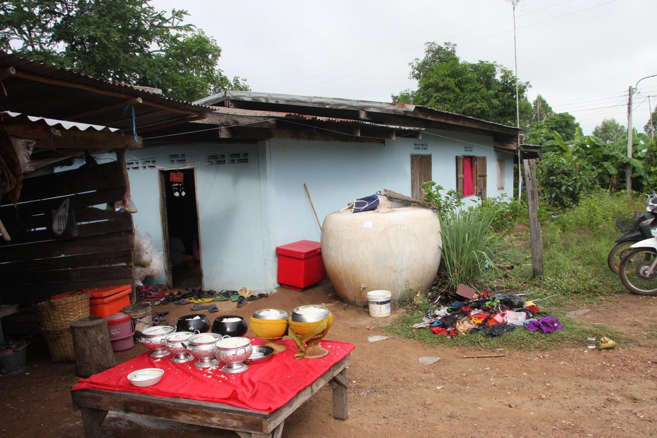 ต่อมาวันนี้ นางสุกัญญา พร้อมญาติๆ ได้นิมนต์พระมาสวดทำพิธี นำโดย หลวงตาเหลือ เจ้าอาวาสวัดมอสำราญ หลวงพ่อประเสริฐ วัดศรีโสภณ รวมทั้งหมด 9 รูป มาทำพิธีสวดถอนปัดเสนียดและส่งวิญญาณ อุทิศส่วนกุศลให้เจ้ากรรมนายเวร โดยใช้เวลาในการสวดนานนับชั่วโมงทั้งภาษาบาลีและแปลเป็นไทย โดยมีเจ้าของบ้านพร้อมญาติๆ และชาวบ้านมาร่วมพิธีกันจำนวนมาก พร้อมทั้งตั้งเครื่องเซ่นไหว้ นายหมื่น เรื่อศรีจันทร์ ซึ่งเป็นพ่อและเสียชีวิตไปนานกว่า 10 ปีแล้ว