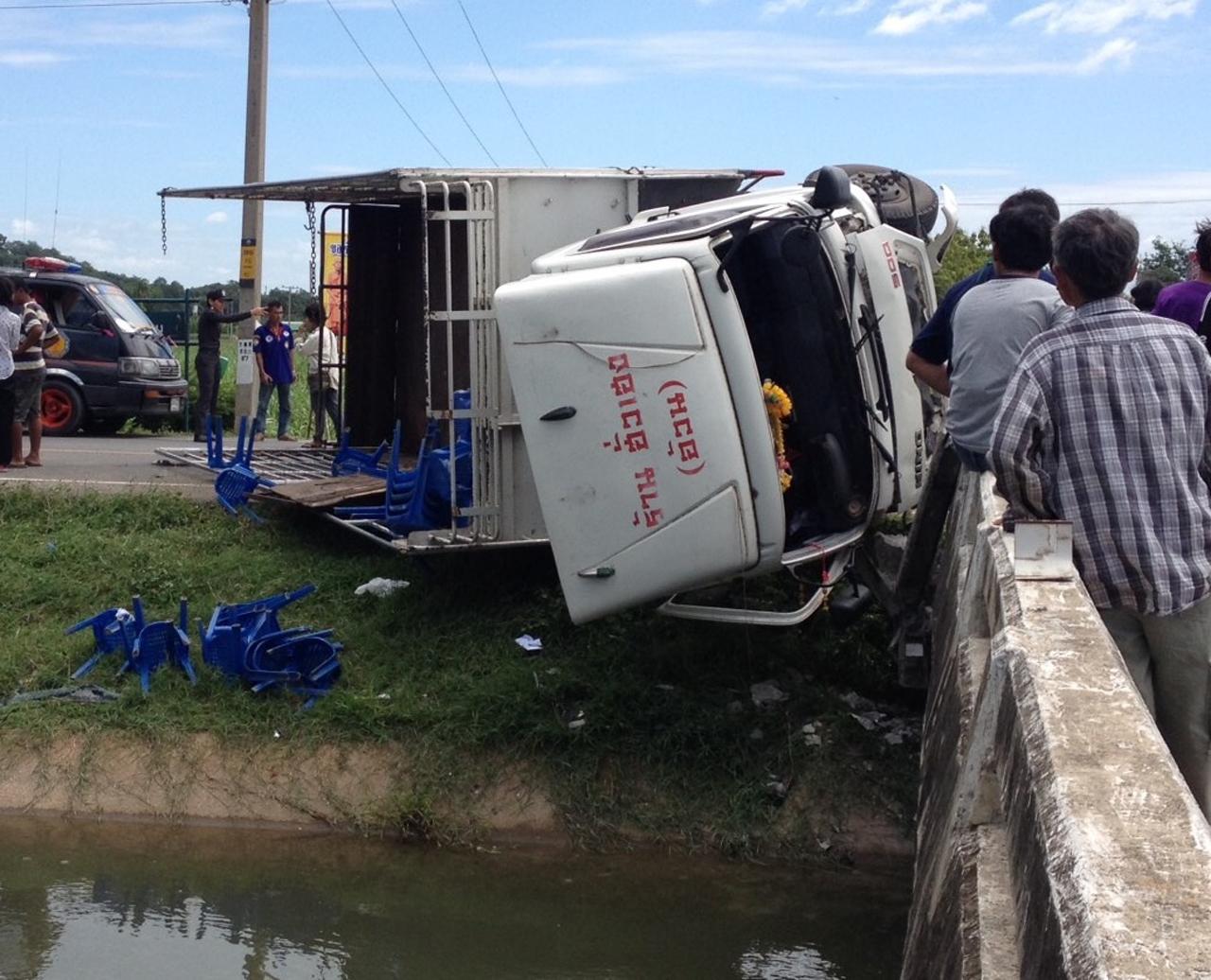 เกิดอุบัติเหตุรถกระบะชนกับ รถ 4 ล้อ บรรทุกโต๊ะจีน บนถนนสายท่ามะกา-สนามแย้ ที่ อ.ท่ามะกา จ.กาญจนบุรี เป็นเหตุให้คนขับรถบรรทุกกระเด็นตกคลอง ดับ 1 ราย และบาดเจ็บสาหัส 1 ราย...