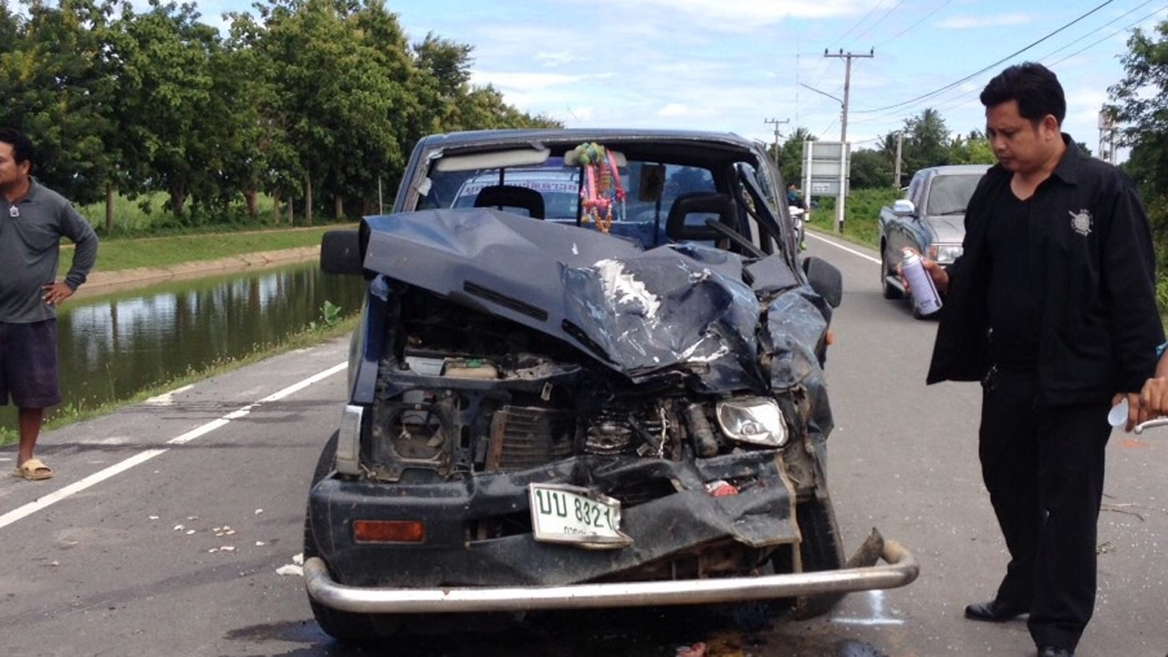 เมื่อวันที่ 9 ส.ค. 58 ร.ต.ท.(หญิง) นรรศมณญ์ เจริญยิ่ง พงส.สภ.ลูกแก อ.ท่ามะกา จ.กาญจนบุรี ได้รับแจ้งจากศูนย์วิทยุมูลนิธิมิราเคิล ออฟไลฟ์ ประจำ จ.กาญจนบุรี ว่าเกิดอุบัติเหตุรถชนกันบนถนนเลียบริมคลองชลประทาน สายท่ามะกา-สนามแย้ หมู่ที่ 2 ต.สยามแย้ อ.ท่ามะกาฯ ส่งผลทำให้มีผู้เสียชีวิตเป็นชาย 1 ราย และมีผู้ได้รับบาดเจ็บเป็นผู้หญิงอาการสาหัสอีก 1 ราย หลังรับแจ้งจึงรีบเดินทางไปตรวจสอบที่เกิดเหตุ พร้อมประสานแพทย์เวร รพ.มะการักษ์ ให้มาร่วมชันสูตรพลิกศพ ในที่เกิดเหตุพบรถบรรทุก 4 ล้อ อีซูซุ สีขาว เลขทะเบียน 98-8775 กรุงเทพมหานคร จอดอยู่ในสภาพพลิกคว่ำตะแคงขวา ขวางถนนตรงคอสะพานพังเสียหาย ห่างไปเล็กน้อยพบรถกระบะนิสสัน รุ่นบิ๊กเอ็ม สีน้ำเงิน เลขทะเบียน บบ 8321 กาญจนบุรี จอดอยู่ในสภาพด้านหน้ารถพังเสียหาย