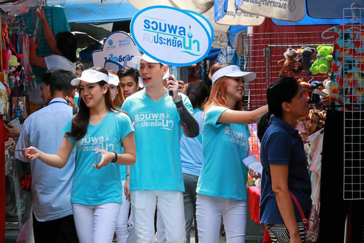 ในส่วนของภาคประชาชน กปน.ได้รณรงค์การประหยัดน้ำให้ประชาชนกลุ่มต่างๆ และร่วมกับหน่วยงานทุกภาคส่วนในพื้นที่บริการของ กปน. โดย กปน.จะเผยแพร่การรณรงค์ในจุดชุมชนใหญ่ๆ อาทิ หมู่บ้าน ศูนย์การค้า ตลาดนัด และล่าสุดได้จัดกิจกรรม “รวมพล คนประหยัดน้ำ” ในอาคารสำนักงานในย่านเศรษฐกิจบริเวณใจกลางเมือง อาทิ สีลม อโศก สุขุมวิท อารีย์ แจ้งวัฒนะ เป็นต้น ได้รับการตอบรับจากหนุ่มสาวชาวออฟฟิศ ช่วยกันใช้น้ำอย่างประหยัดเป็นอย่างดี